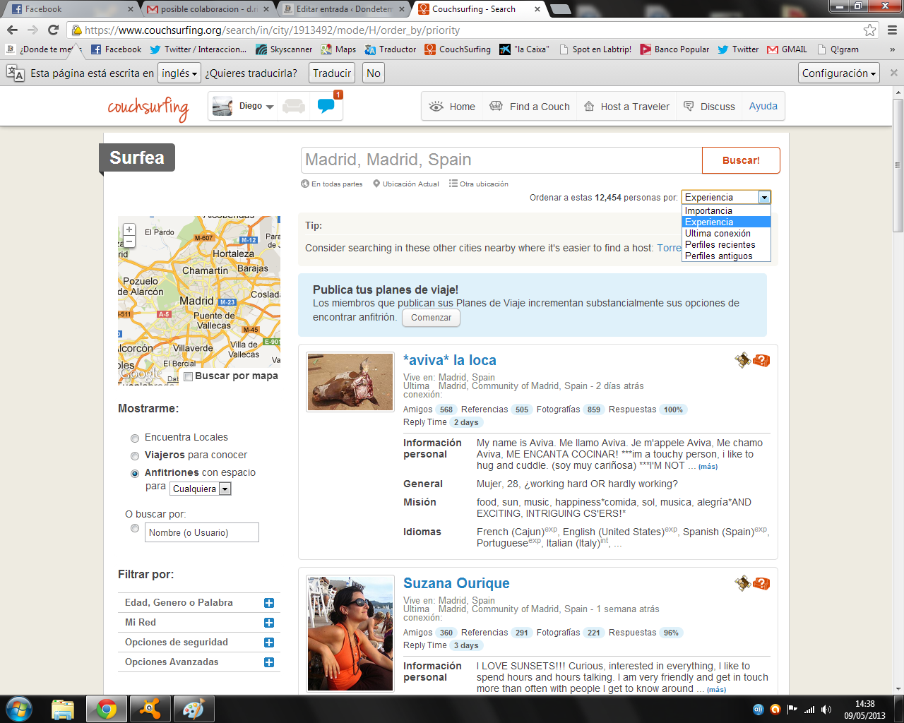 lo busqué por internet, y así llegue a Couchsurfing