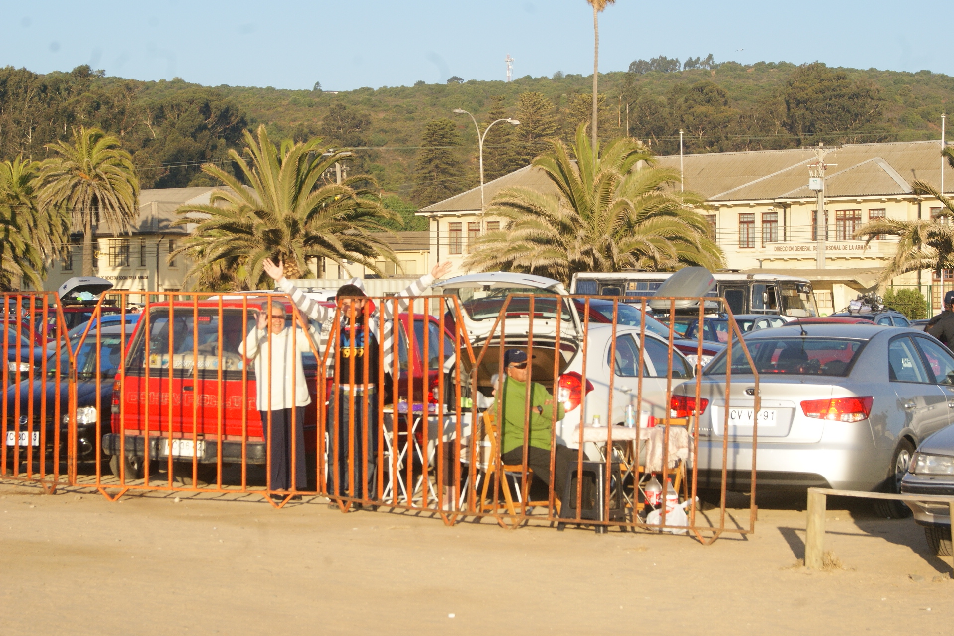 temprano nos fuimos a dejar el auto en la costa, frente al sector marino de las salinas (donde habíamos estado antes), eran tipo 10:00 y era 1º linea de vista; al rato conocimos a los del auto de al lado, así que todo sobre ruedas, ya que nunca está de más tener a alguien «buena onda» cerca.