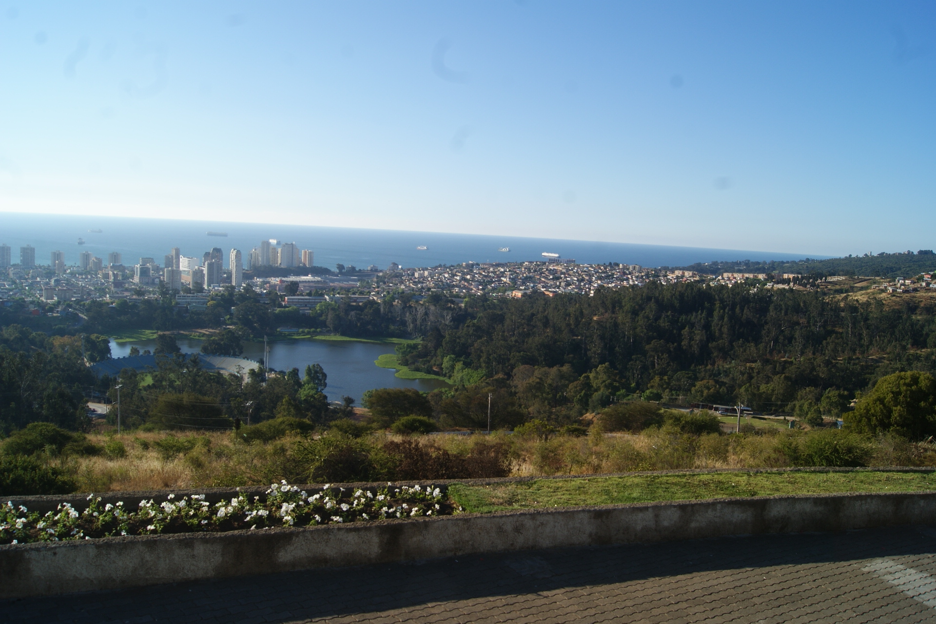 Llegando al centro nos fuimos a la zona del Sausalito, estadio del FC Everton, que está rodeado de lagunas y mucho verde…por desgracia es un equipo al cual no le va muy bien, y por ende, la zona que tiene su estadio, NO esta muy cuidada, así que luego de recorrerla, subimos a un mirador tipo 19:00h donde se aprecia todo Viña del mar y Valparaíso.