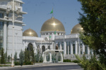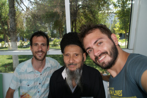 Nos fuimos hasta la Turkmenbashi navoyi, que es la calle principal y desde la cual se puede cruzar la ciudad en medio de todos los edificios mas lujosos de la ciudad, palacio presidencial, universidades…todas en un blanco impoluto, cupulas doradas…y soledad, practicamente no habia nadie en las calles, excepto un “typical turkmen man”quien accedió a hacerse una foto con nosotros, sobretodo al saber que eramos de España
