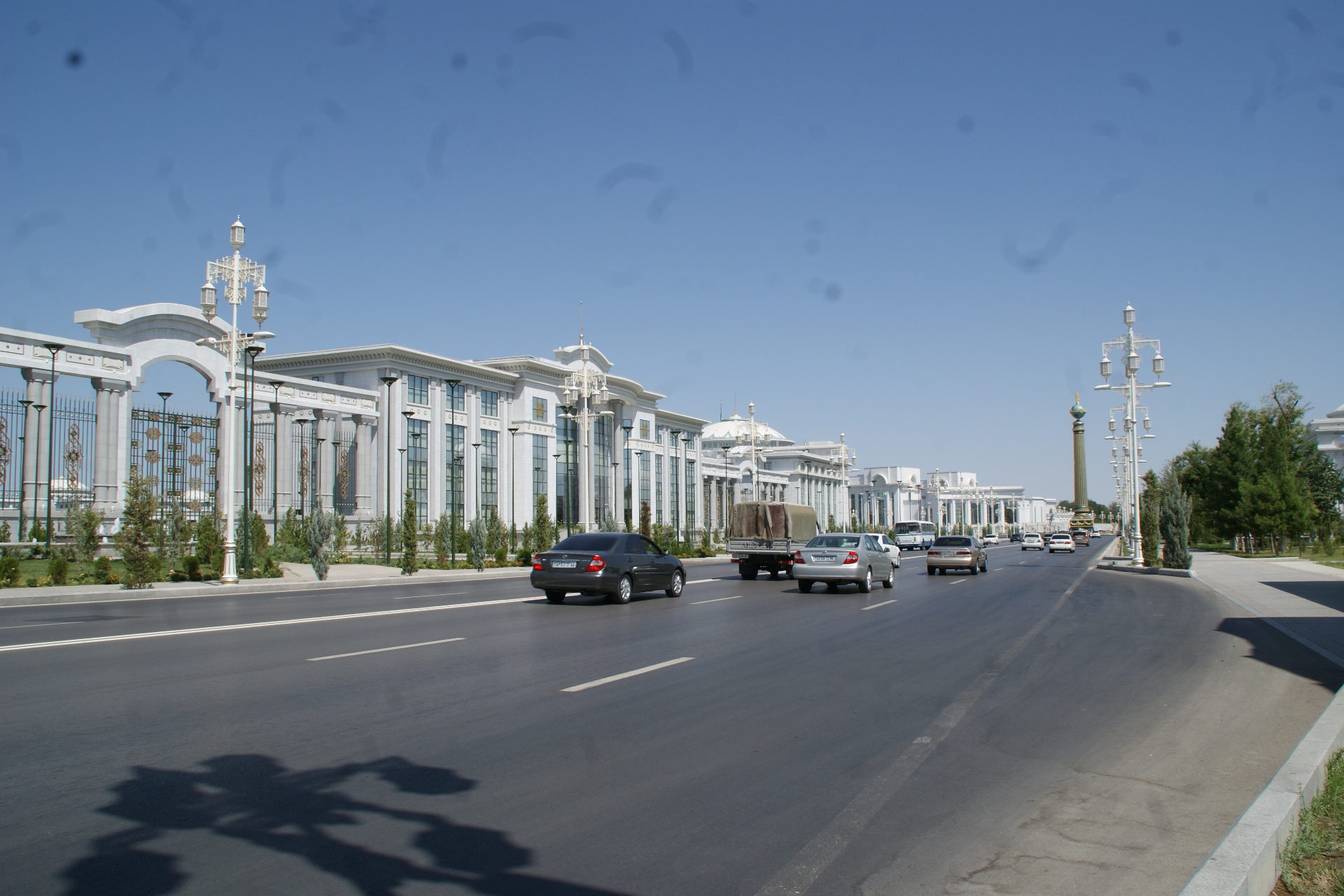 sobre las 10am llegamos a Ashgabat, a la estacion de tren, metros antes ya veiamos una ciudad totalmente diferente, con bandejon central, calles adornadas, nombres en las esquinas…