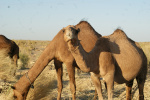 el sol tocaba el horizonte y ya estabamos en la region de Darvaza, de hecho, los camellos nos dieron la bienvenida mientras al otro costado el resplandor rojizo del crater nos indicaba que estabamos cerca.