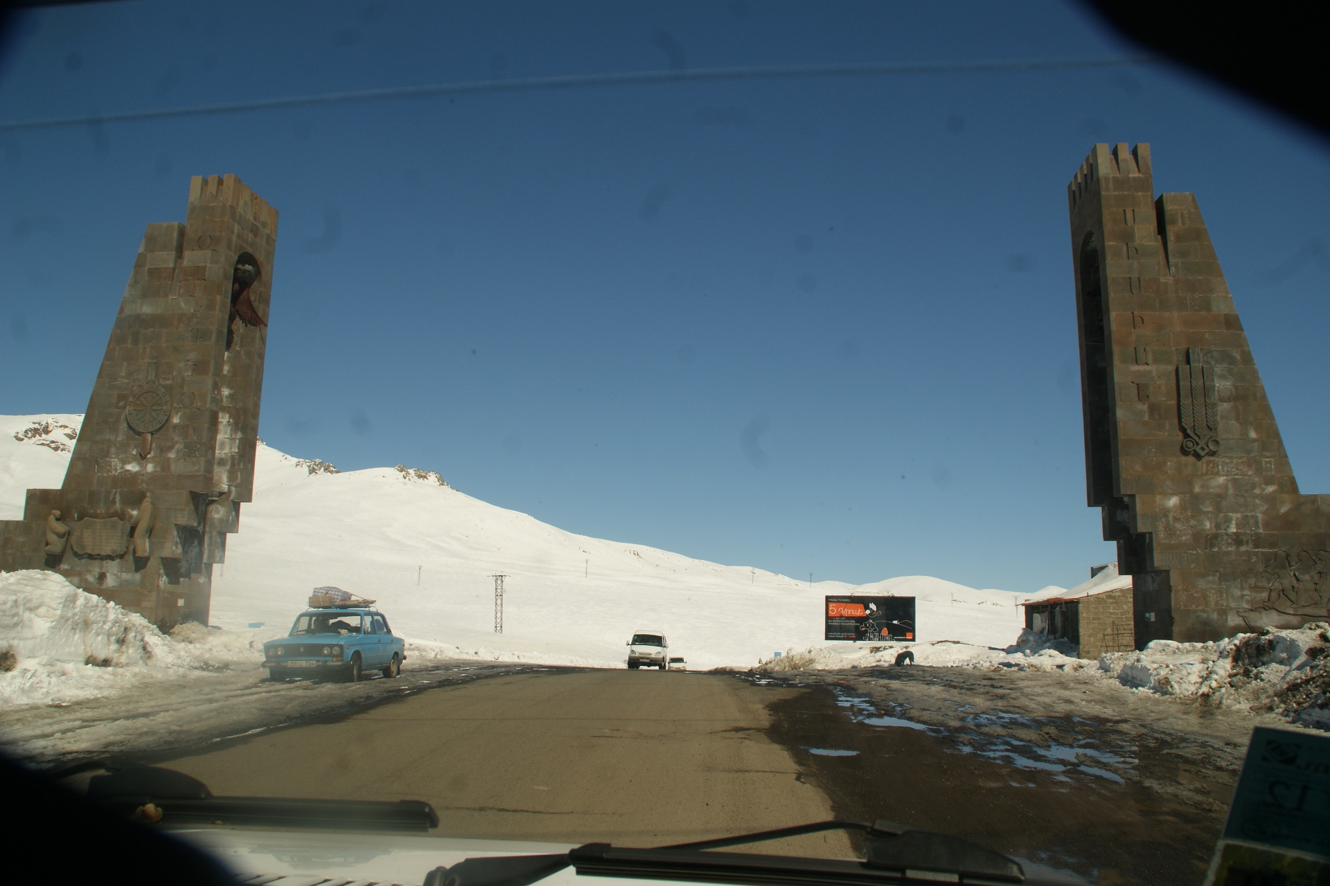 llegar hasta la frontera no fue difícil, el control policial imponía por saber que es un sitio “especial” pero el policía de la frontera fue muy amable, nos preguntó dónde íbamos, dónde nos quedábamos, y que la visa la podíamos sacar al día siguiente en Stepanakert, la capital