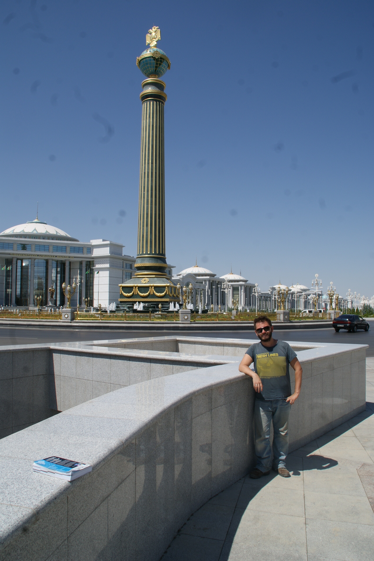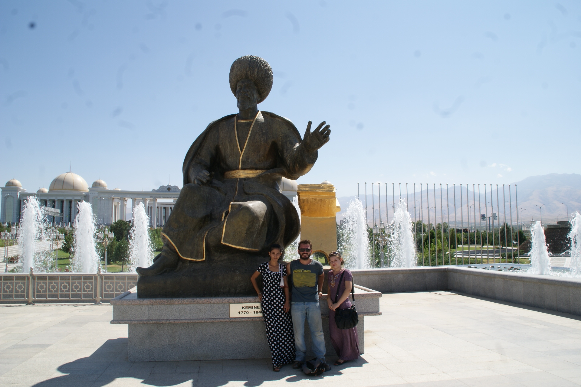 sabíamos de la existencia de unos cuantos monumentos, la gran mayoría en honor del gran líder, Niyazov, entre las cuales el monumento a la independencia, la gran fuente…tuvimos la suerte de que al patear por algún bazar de la ciudad, 2 chicas se ofrecieron a guiarnos hasta estos destinos, aunque por ejemplo cuando le decíamos la fuente, nos miraban con cara de «ni puñetera idea»