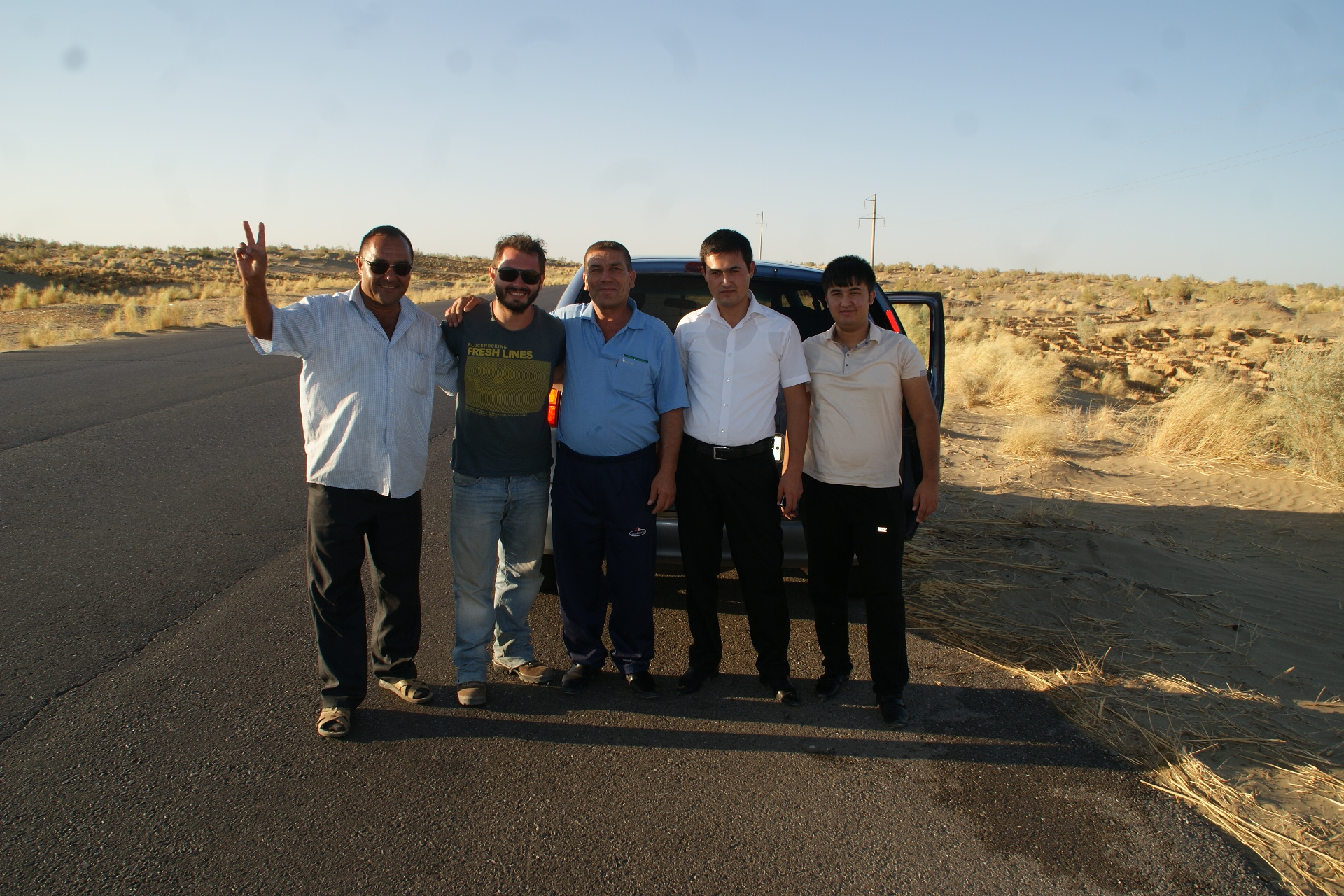 le problema venia por nuestra salida de Turkmenistán, ya que el visado pone por donde debes salir: TURKMENABAT-FARAP, el control en la mitad del país, por tanto si salíamos por ahí teníamos que ir desde ahí al oeste para Uzbekistán, luego volver al centro y seguir al este…perdida de tiempo, así que nos arriesgamos a cruzar por el control de la ciudad de Dasoguz, que es donde iba esta minivan, y probar suerte….