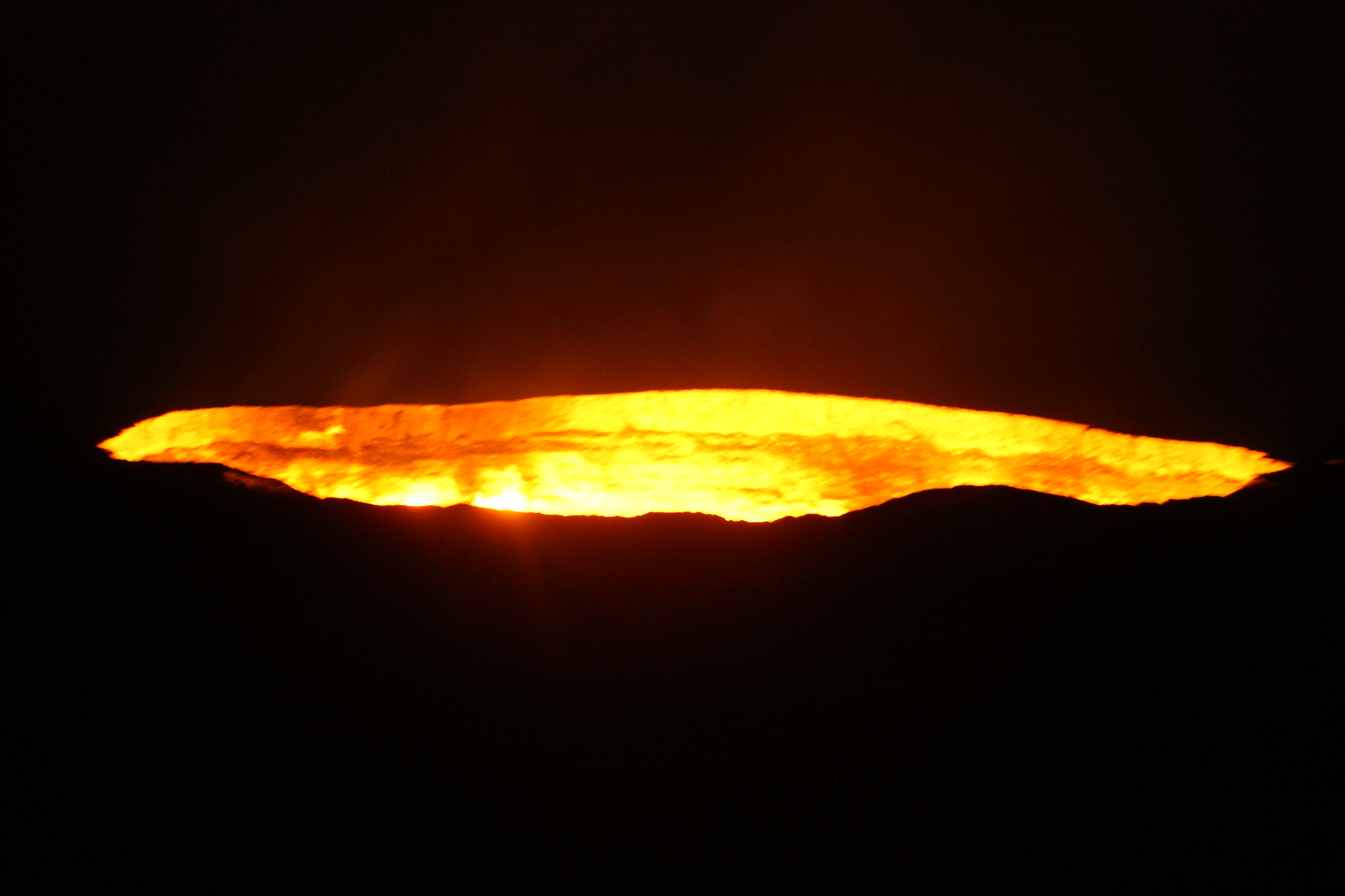 llegamos al cráter….y no estábamos solos, había una turkmena con 2 chicas francesas, con las cuales conversamos un poco y luego nos dedicamos a recorrer esa curiosidad en el medio de la nada, la cual ofrece un espectáculo único, producto de un intento soviético de extinguir una cueva de gas natural….que lleva ardiendo 40 años.