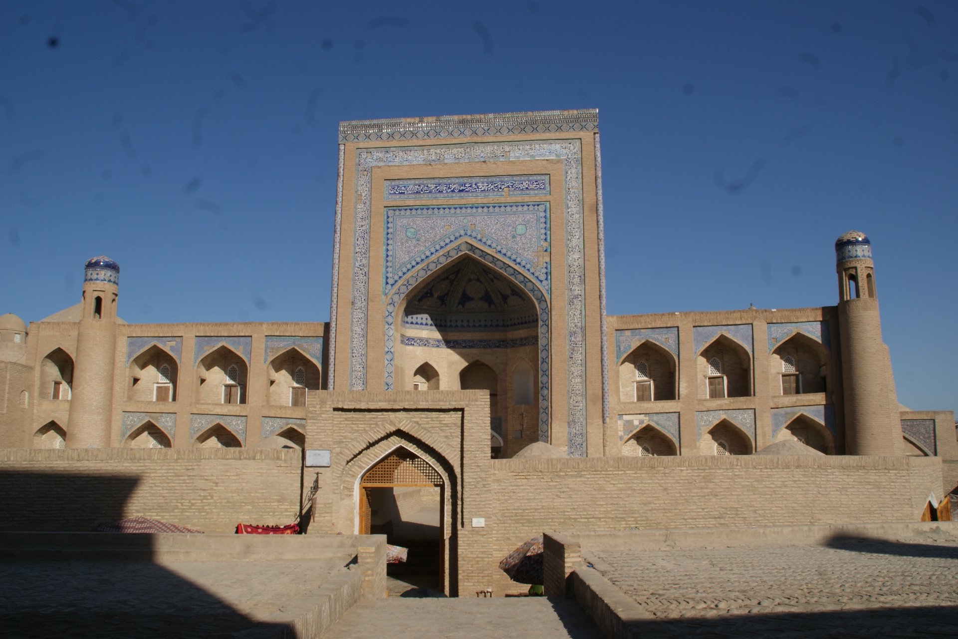 La entrada a la mezquita de Juma, con sus 218 pilares que sujetan el techo, su minarete desde donde se puede apreciar toda la ciudad, o el minarete de Kalta Minor, son los atractivos principales…y obviamente, con extra ticket. las entradas en las medresas, que son academias de islam, llaman la atencion, hasta que ves que detras de cada puerta no hay cultura uzbeka, sino souvenires que encuentras en el chino de tu barrio… eso cansa, y mata la belleza del lugar