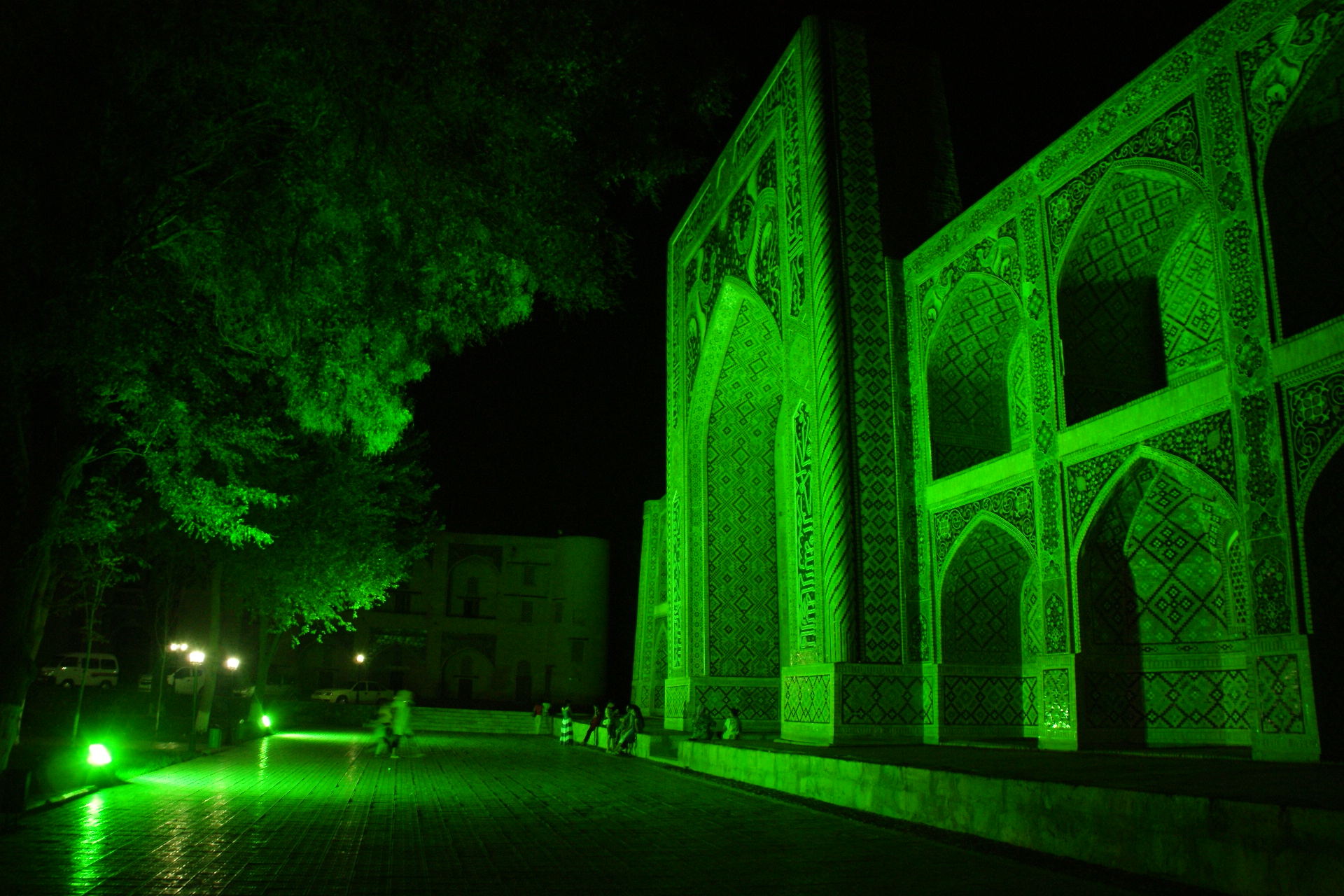 dejamos nuestras cosas, nos dimos una vuelta por la plaza central, Divan-Beghi, y pillar unos sheshlik para matar el gusanillo de un dia duro, habia mucho ambiente en la calle, casi dificil decir que estabas en Asia, a no ser por las medresas y las mujeres con velo, pero por lo demas….una tarde /noche como en Madrid,