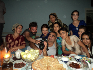seguimos en ruta, y el de Kyrgyzstan (en la foto el de camisa blanca) nos preguntó si teníamos alojamiento, al decirles que no, nos contó que el volvía a casa porque era el cumpleaños de su hermana y nos invitaba a quedarnos con ellos… la experiencia de conversación (chicas hablando ingles perfectamente) de comida, bebida y hospitalidad, fue algo que convirtió un día duro, en irnos a dormir con una sonrisa en la cara.