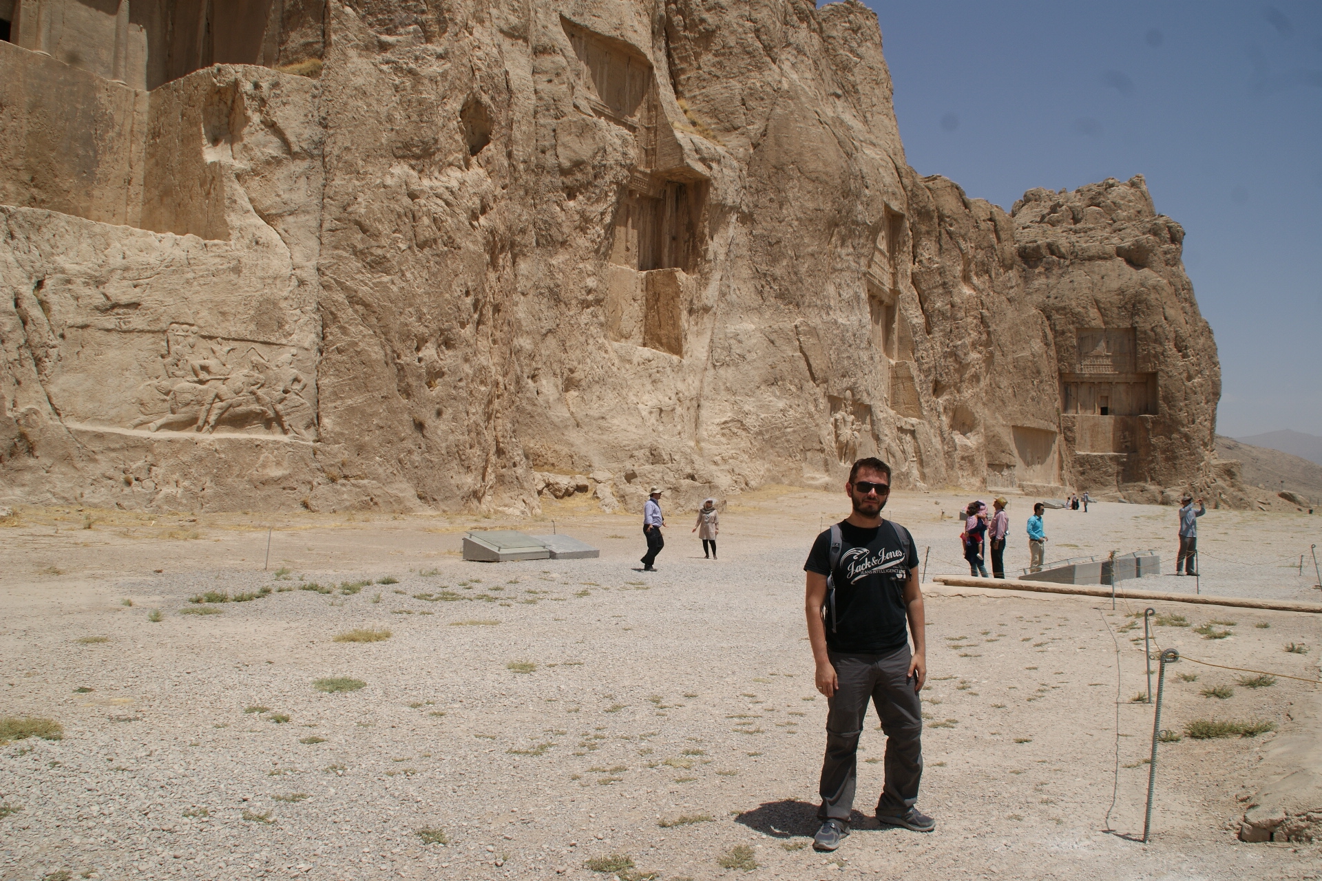 nos pusimos en marcha hasta Naqsh-e Rostam, a unos 6kms de Persépolis, una necrópolis donde se encuentran las tumbas de Jerjes, Darío El Grande(la tumba mayor),Artajerjes I y Darío II. otra necropolis con restos persas y la tumba de Ciro el Grande, está en Pasargade, a 80km de Persépolis.