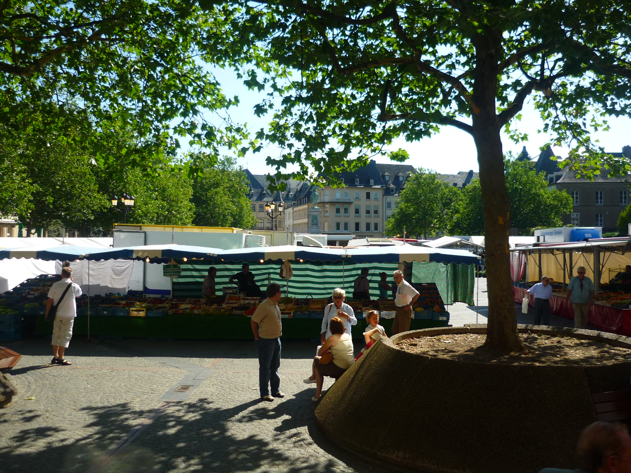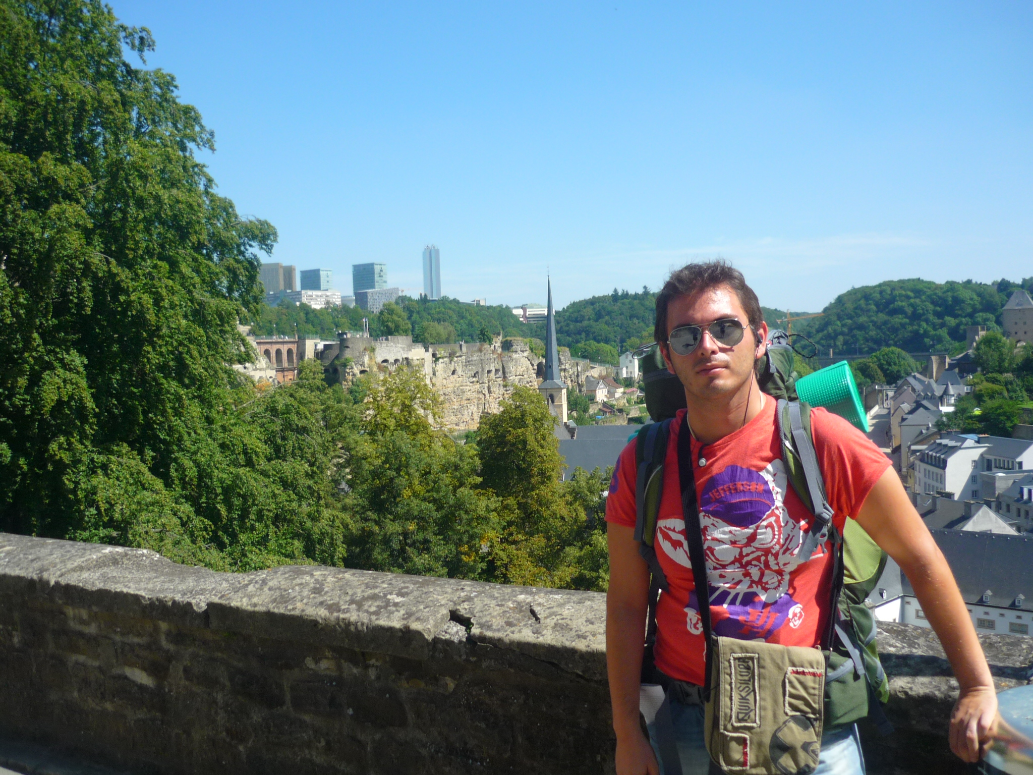 bajamos por el valle de la petrusse y rodeamos todos los valles, hasta llegar al mirador de luxemburgo, donde se tiene una vista genial de toda la zona antigua, hasta que al seguir avanzando, habia otro puente que ya comunicaba con las afueras de la ciudad, y volvimos sobre nuestros pasos hasta llegar al centro y parar en la plaza de guillermo II, y escchar algo de musica en vivo en su plaza central