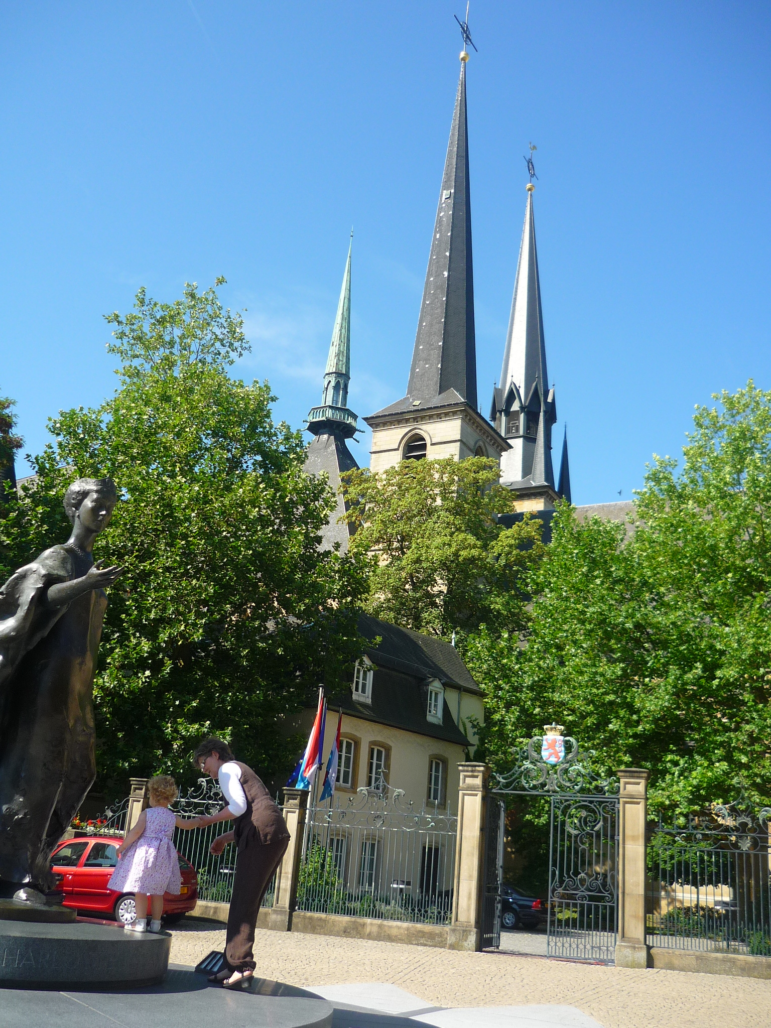 despues de un rato vimos el puente adolphe con los cuarteles de policia,y ya vimo lo atractivo de la ciudad…un verde diferente al de españa, un aire….especial, cruzamos el puente, y t encuentras con un megacasino y al lado la iglesia de notredame de luxemburgo.