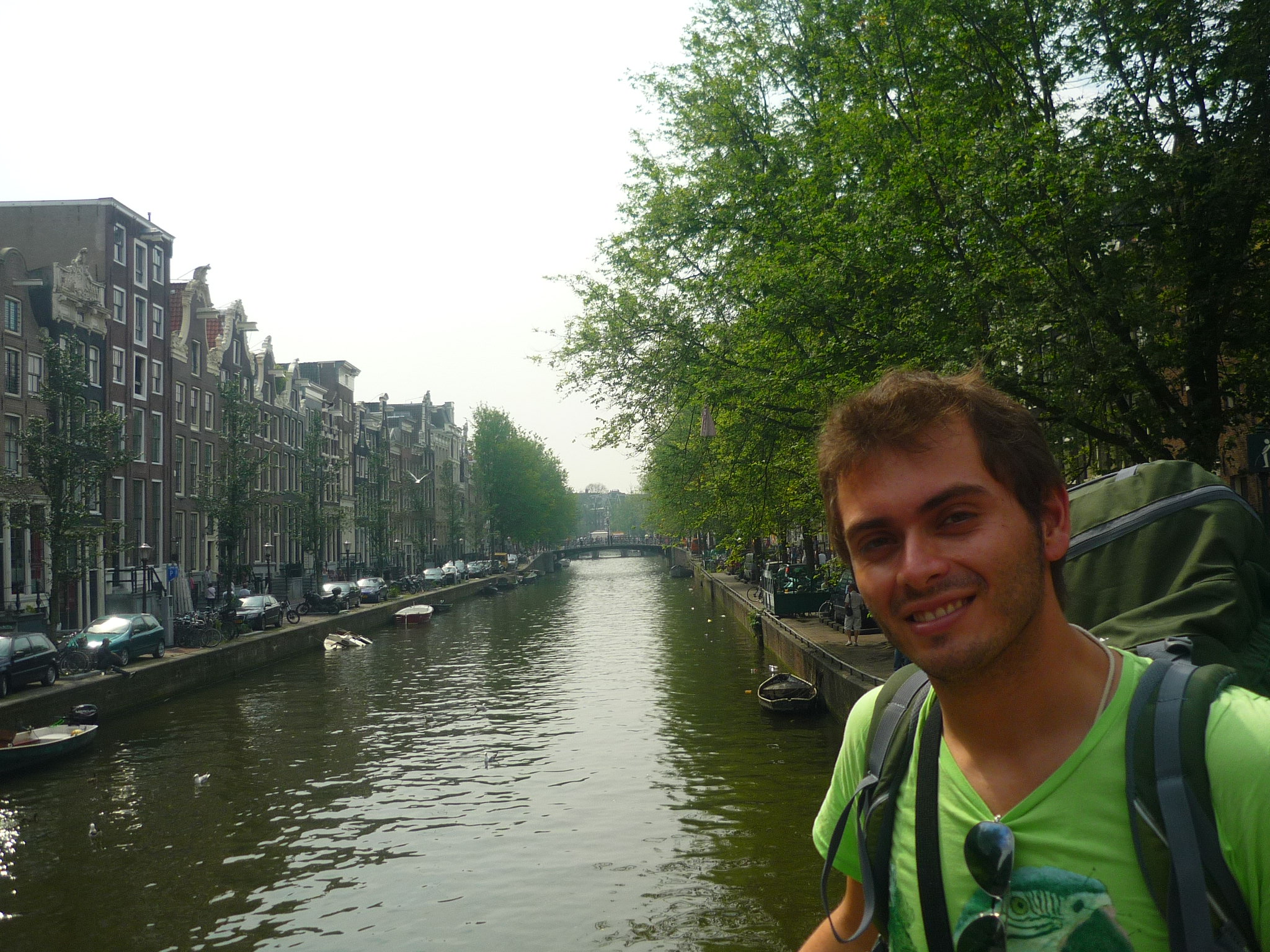 nos explico un poco de k iba todo, la historia d amsterdam, nos hablo de la plaza, la iglesia nueva y vieja, y nos fuimos al oude kerk, y al inicio del barrio rojo, barrio chino, barrio judio, plaza de las torturas, el museo de la marihuana, la carcel d mujeres que ahora es el rectorado de la universidad, la carcel de hombres, un coffee shop donde se grabo oceans 12 (http://www.youtube.com/watch?v=f_0LcurK6Sk) con una nueva actuacion de nuestro guia turistico