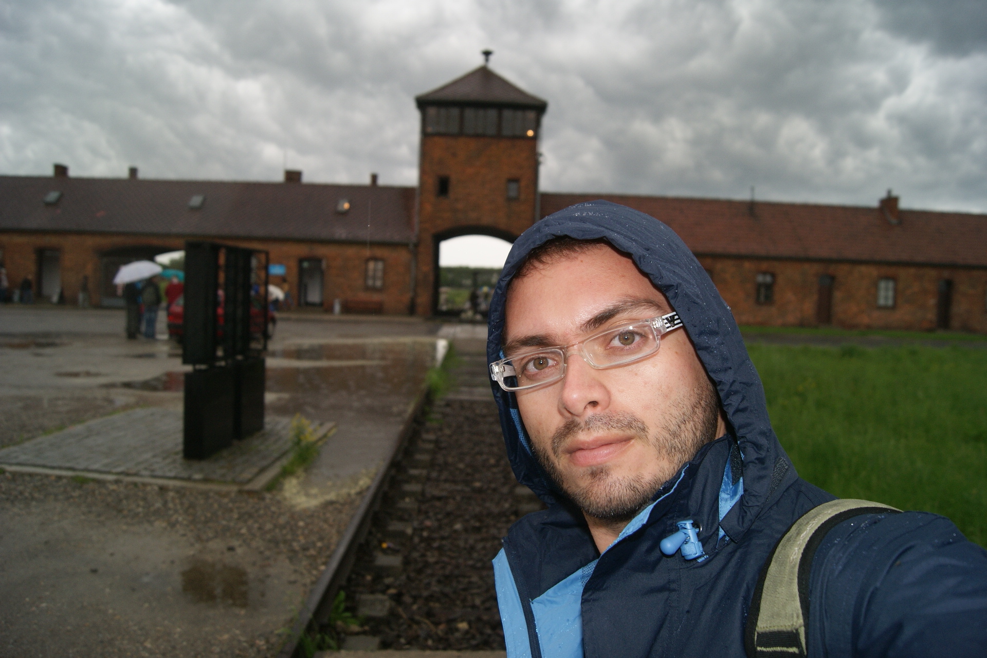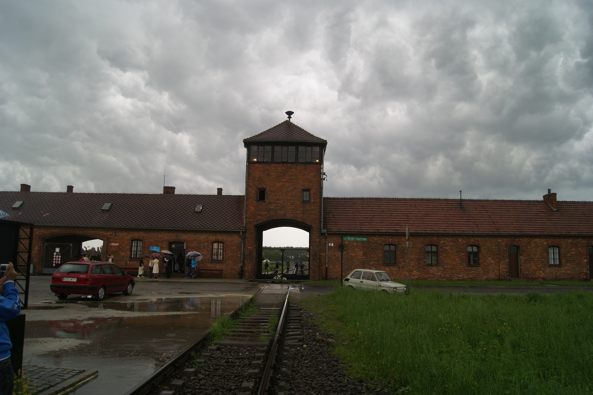 A las 1530 acabamos ese campo, a las 1540 cogimos el bus gratuito hasta Birkenau, donde el día si que empeoró bastante y nos acortó la visita. Parada obligatoria en los rieles justo antes de entrar a Birkenau, imagen de muchas películas que hacen alusión a esta aberración de la historia. Rayos y truenos caían en ese momento, como si fuera una recreación de lo que ahí sucedió.