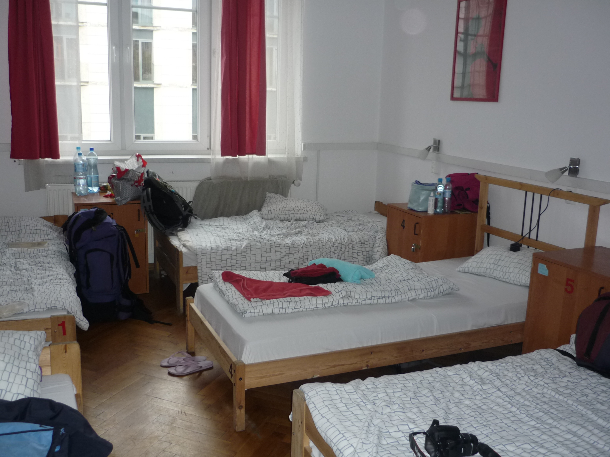 A las 1630 cogimos nuevamente el bus hasta Auschwitz-1, desde donde pillamos otro autobus hasta Krakow, otros 20zl y de había caminar por un centro comercial hasta mi hostal GREG-&-TOM, lo elegí por cercanía y por precio, y si bien por fuera espanta, por dentro está muy muy bien, me recibieron con una cerveza, la habitación costó 55zl , pero son camas individuales, no hay literas, son espaciosas, mi habitación era de 6, ¡el baño con hidromasaje!, y el desayuno hasta decir basta….