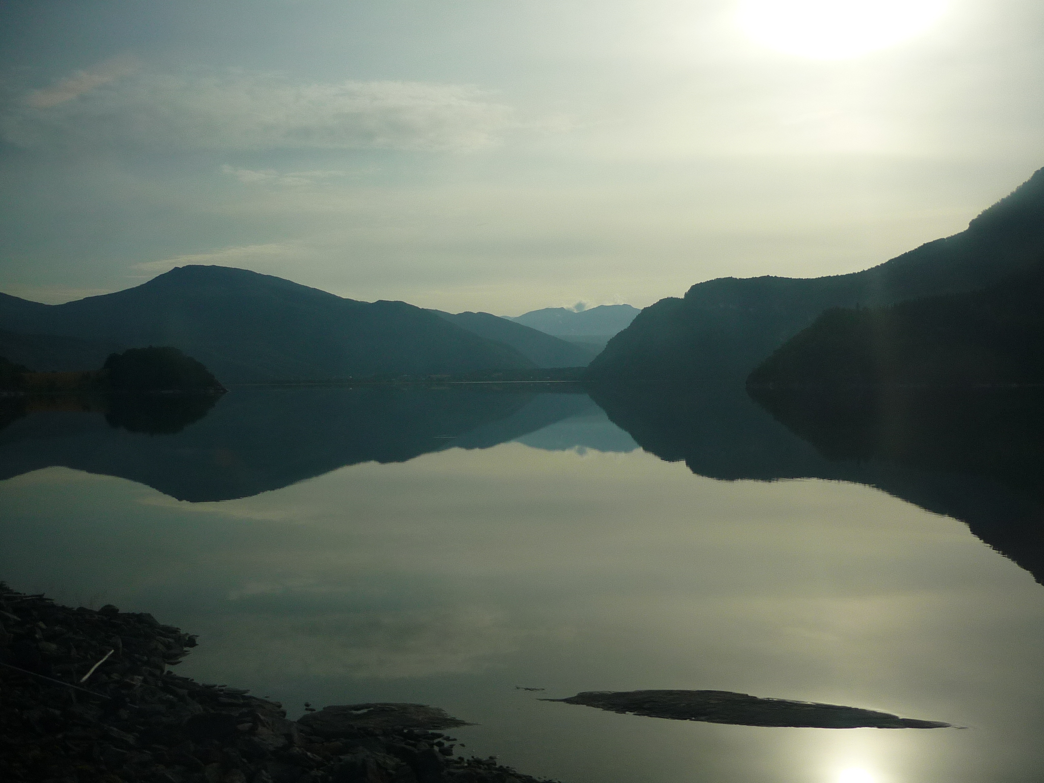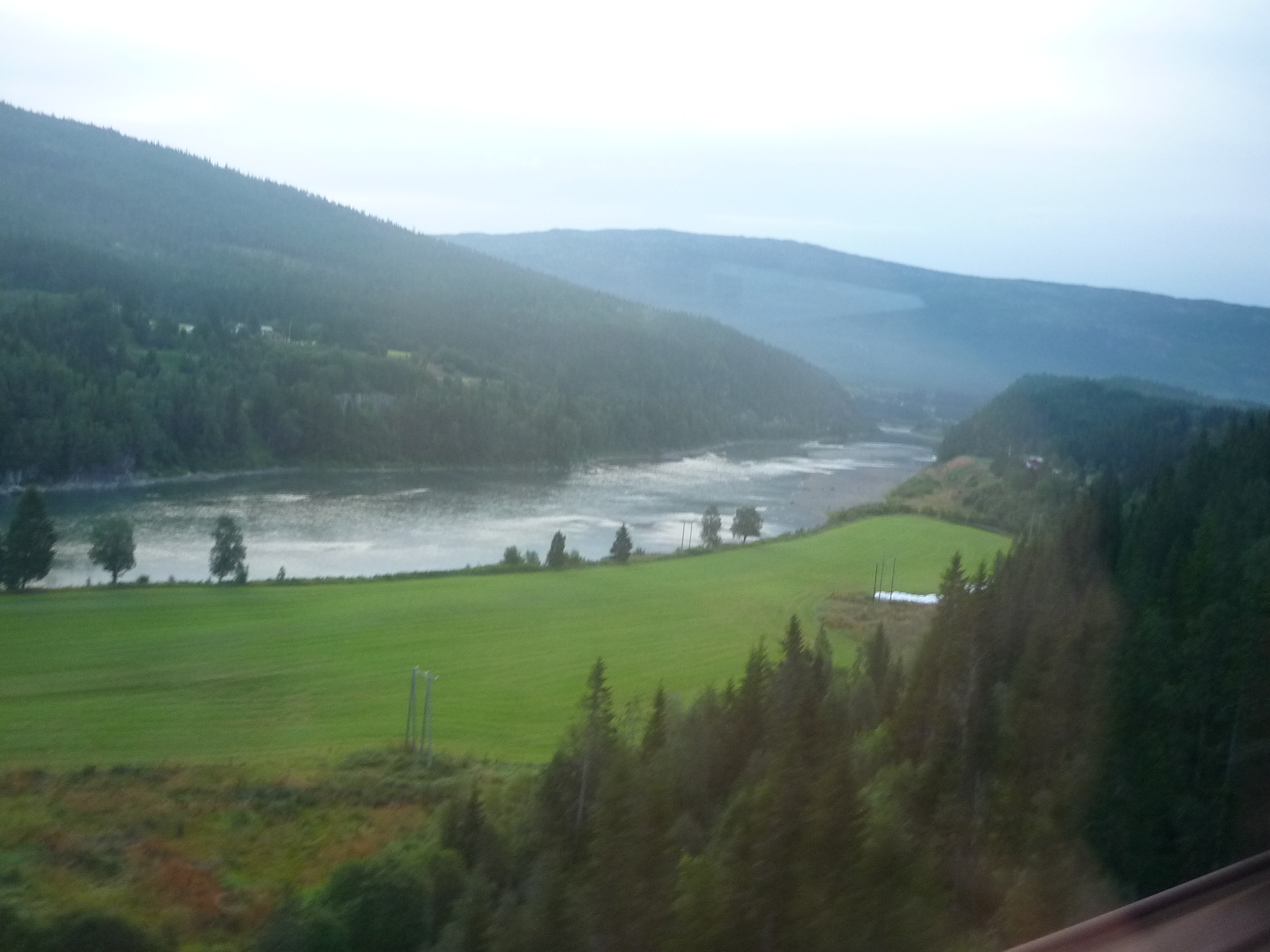 En recompensa, el trayecto comenzó a ser genial….muy genial….me dormí muchas veces en el tren, hasta que llegue a Trondheim con valles, ríos, lagos… con algo de lluvia las vistas eran impresionantes, pero al salir el sol fueron aún mejores…