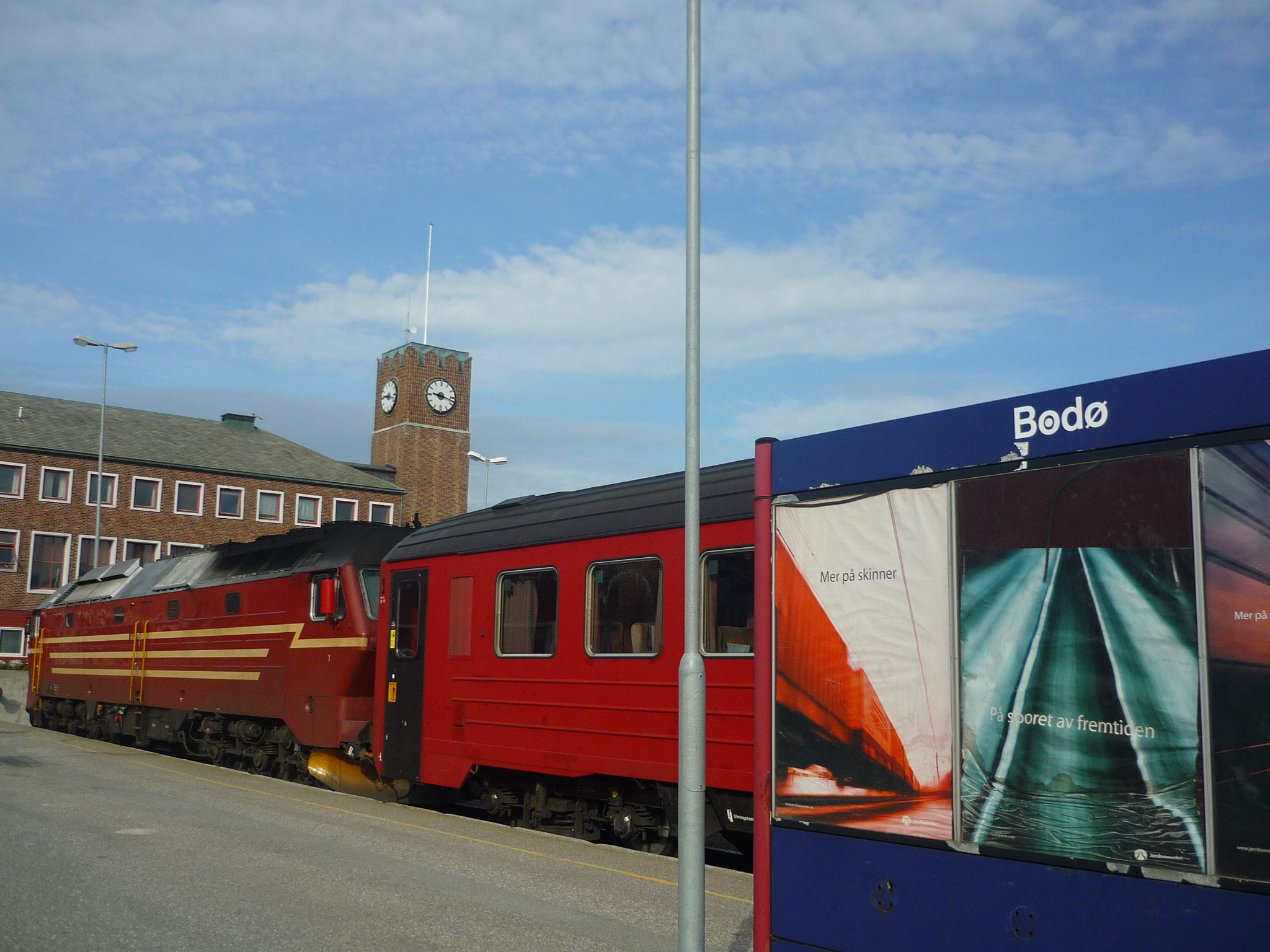 Llegué a Trondheim a las 22:30, donde pillaba tren a las 2300 para Bodoe, el tren genial, super espacioso, y entre los pasajeros iban 2 grupos: uno de 5 españoles que pillaban coche a cabo norte, y un grupo de italianos que no dejaron de joder con la guitarra hasta las tantas, y como ya casi no se hacía de noche pues más canturreaban, ¡¡¡¡¡¡pero yo me vengué!!!!!! iba cada vez que me despertaba a cargar el móvil y las cámaras a los enchufes del baño, así que entre idas y venidas me aseguraba de hacer un ruido suficiente para despertarles