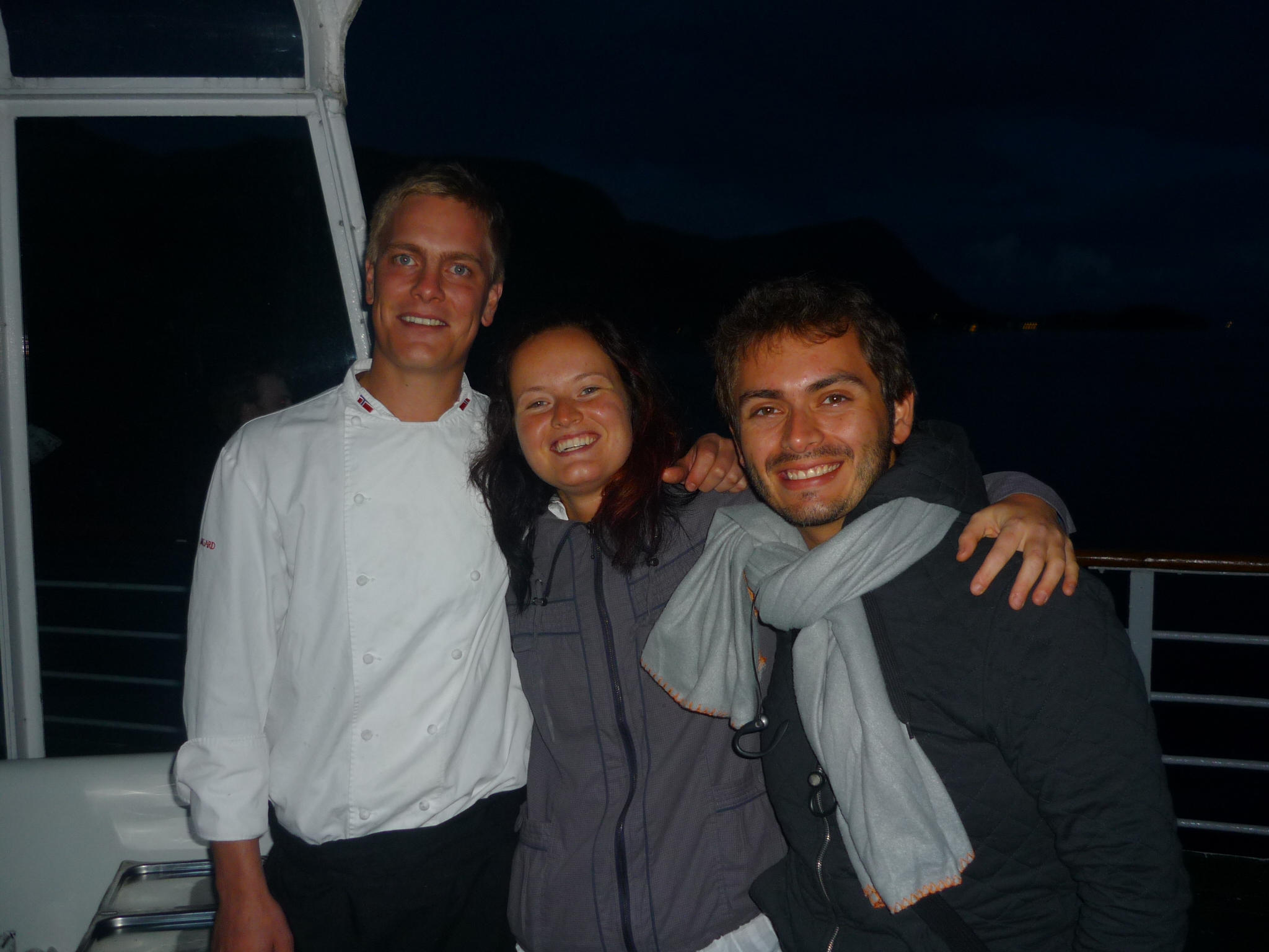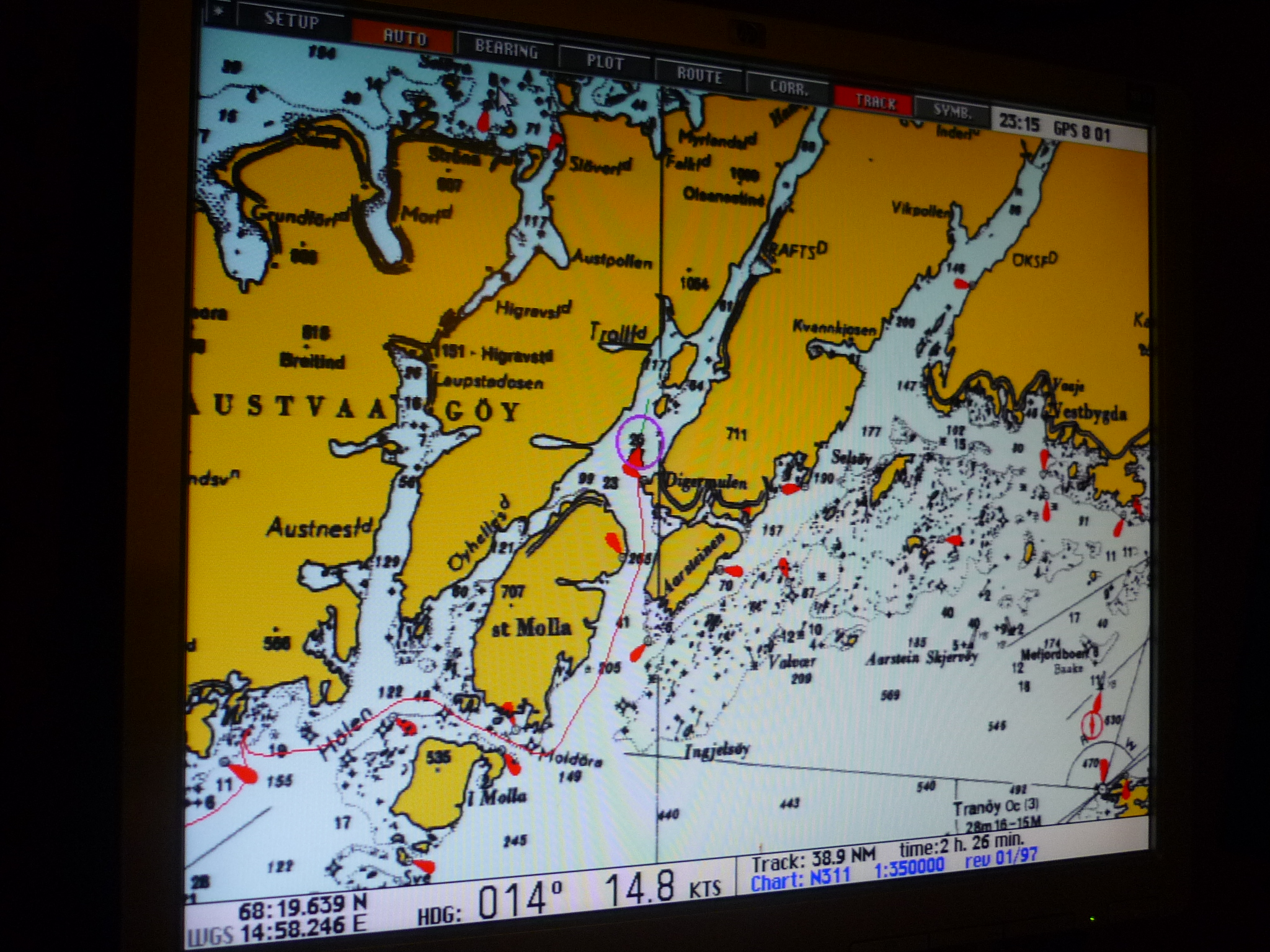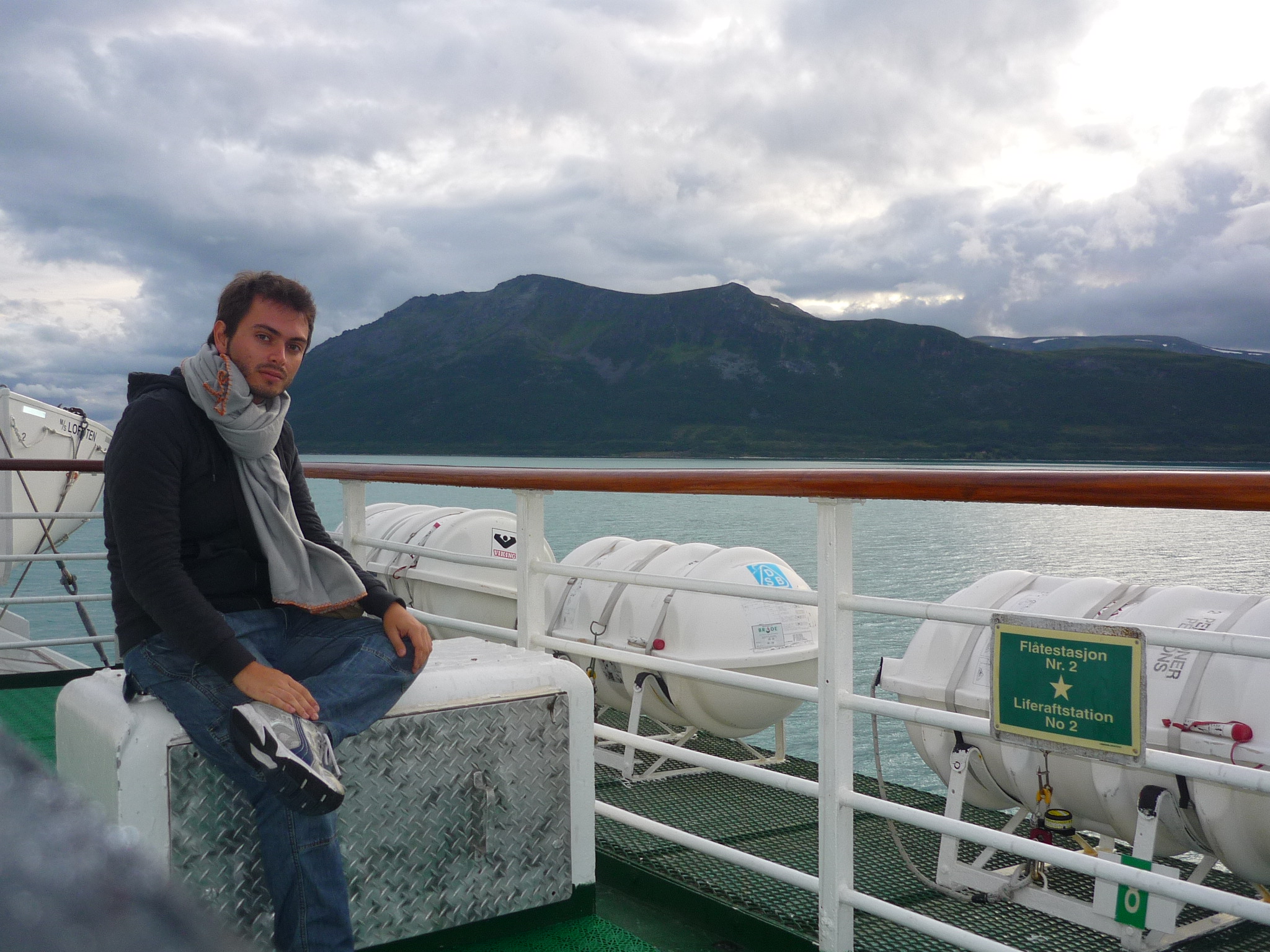 Muchas horas de paseo entre los fiordos, alucinando por el clima, bastante bueno para estar a pocos kilómetros del Círculo Polar Ártico, conocí a un italiano con su novia que venían de turismo rural, e intercambiamos experiencias, y luego paseando por el barco oí españoles:1 pareja de Zaragoza que les estaban enseñando español a unas chinas, hablé con ellos y luego les perdí el rastro.