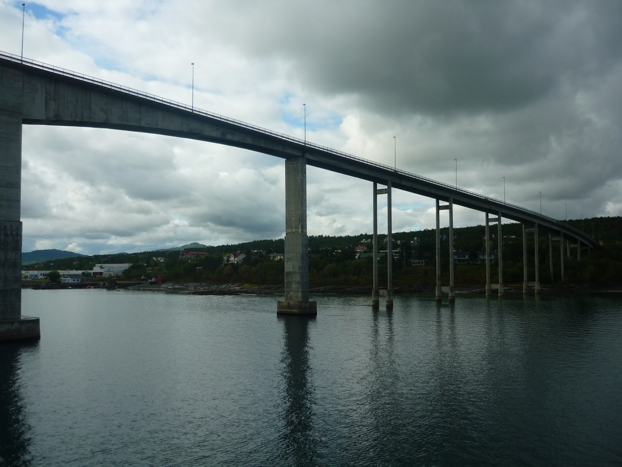 Amanecimos cruzando el puente de Senja, la 2da isla más grande de Noruega, llamaba la atención el color del agua, un verde impresionante.