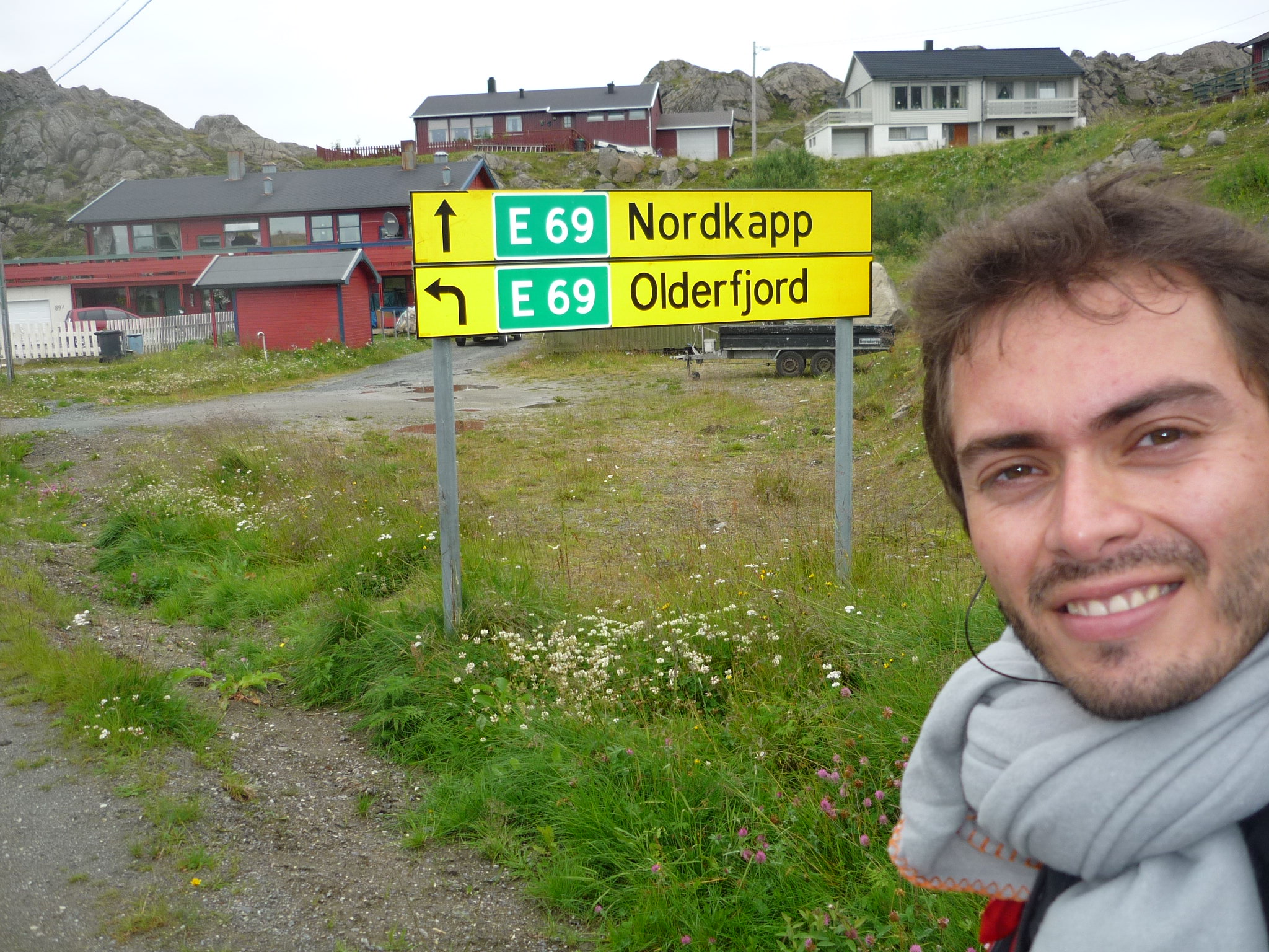 tipo 19:00 organizando mis trayectos con el mapa en el en el suelo de Nordkapp como si el museo fuera mi habitación, con todas mis cosas tiradas por ahí, un chico se queda mirando mi mapa y me empieza a hablar, Pietro, de Alemania, salió de su casa en bicicleta para recorrer Escandinavia en bici y volver en avión