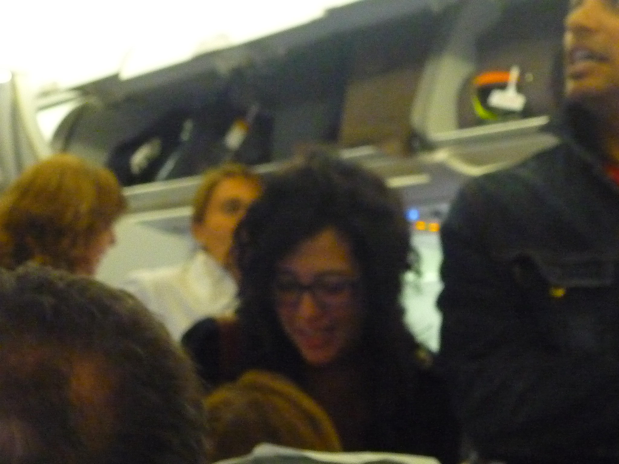A media tarde ya nos fuimos a recoger nuestras cosas al hotel, teníamos 1 hora y pico aun de espera, pero unas cuantas vueltas fueron suficientes, en la espera vimos al cantante de Suecia, que se escondía tras las gafas de sol, y de repente se confirma que nos venimos en el avión con la delegación española, así que nada, en la puerta de embarque estaban todos, bailarines, coreógrafos…y Lucía, la cual se vino sobando todo el vuelo, y con la cual intercambiamos conversación ya en las cintas del aeropuerto de Madrid
