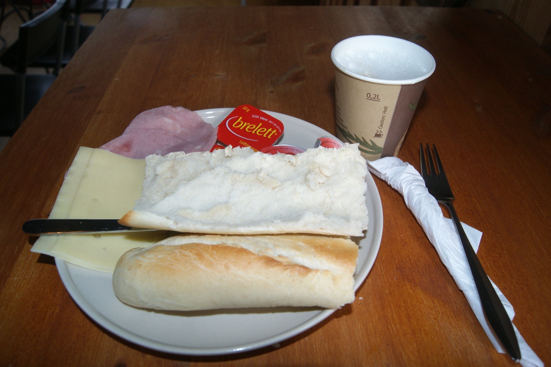 Pasaron rápido las horas hasta las 08am, donde nos despertamos y entre arreglar unos cambios de moneda, me preparé para ir al puerto y coger el ferry, eso si, primero ir a la tienda y «desayunar»: 2 botellas de agua, 2 plátanos y 1 manzana = 62NOK