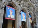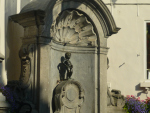 la plaza es enorme y es preciosa, mucha gente y mucha vida, al lado casi unas pinturas de tintin, y el niño meon jaja, que es un poco desilucionante pk es un mierdi niño…pensaba que seria mas grande, pero quizas un niño mas grande meando seria ofensivo jajaja