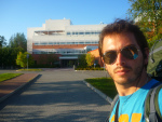 sigues recto, y llegas a un paseo peatonal entre abetos tipical laponian, hasta llegar a la universidad de laponia; la rodeas y pasar por la biblioteca, el museo de la ciudad, y la policia, con unas barreras en forma de reno….si es q son unos cachondos”!!!
