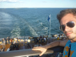finalmente despues de relajar las piernas, me puse en marcha a la estacion del ferry, y esperar a embarcar; el ferry era enooooorme, y por el precio pagado pos teniamos un sitio pa dormir, un salon con suelo y techo jaja, ni camas ni cosas, pero eramos pocos, 1 chico, 1 chica y un matrimonio con 2 hijos.