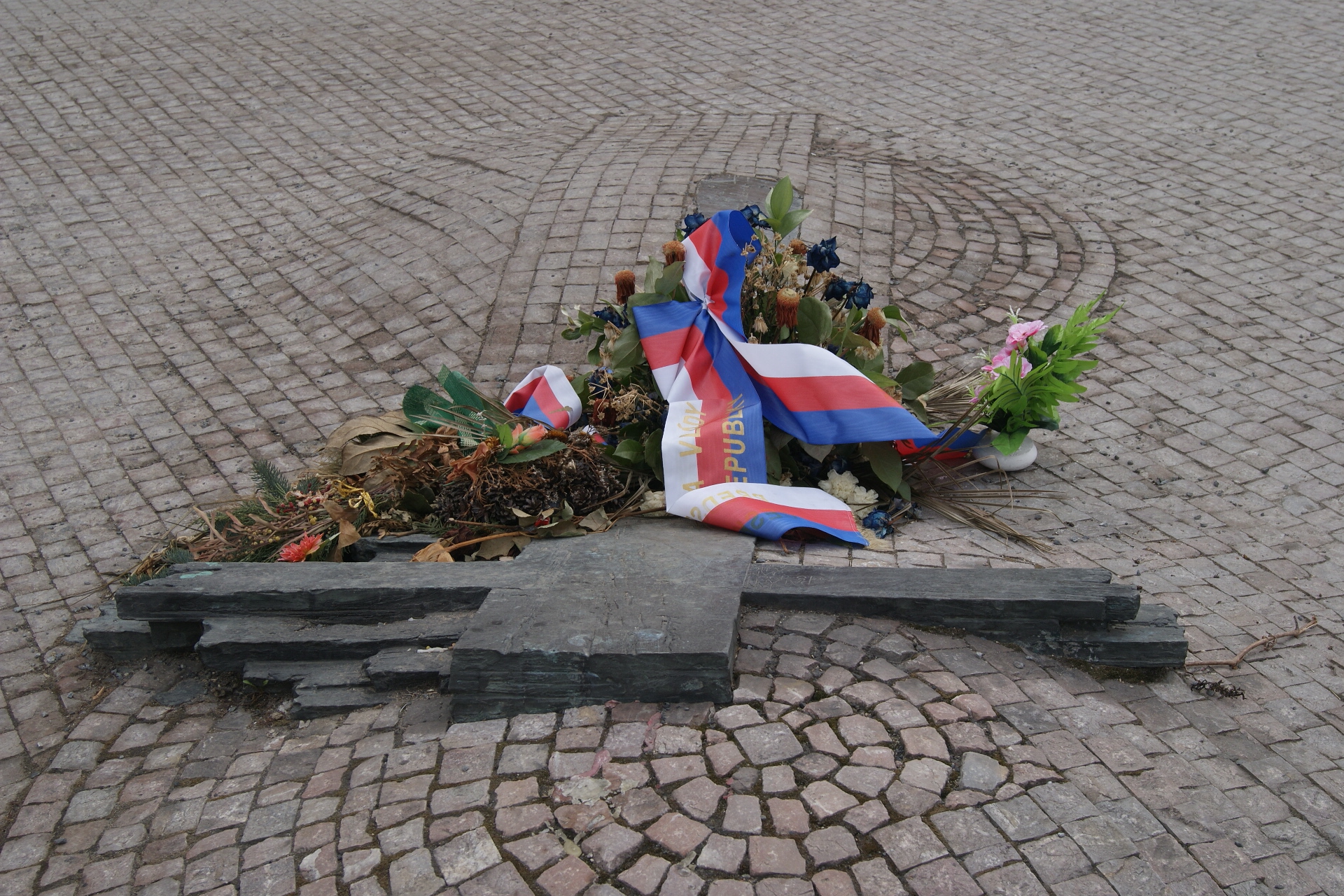 luego nos fuimos al sitio donde yo me comí mi atún, y nos explico lo que sucedió allí, las defenestraciones de la época, y las guerras que sufrió Praga allá por el 1400 y en 1600, donde fue la mas importante de ellas, en frente, 27 cruces blancas pintadas en el suelo reflejan a los muertos en esos sucesos