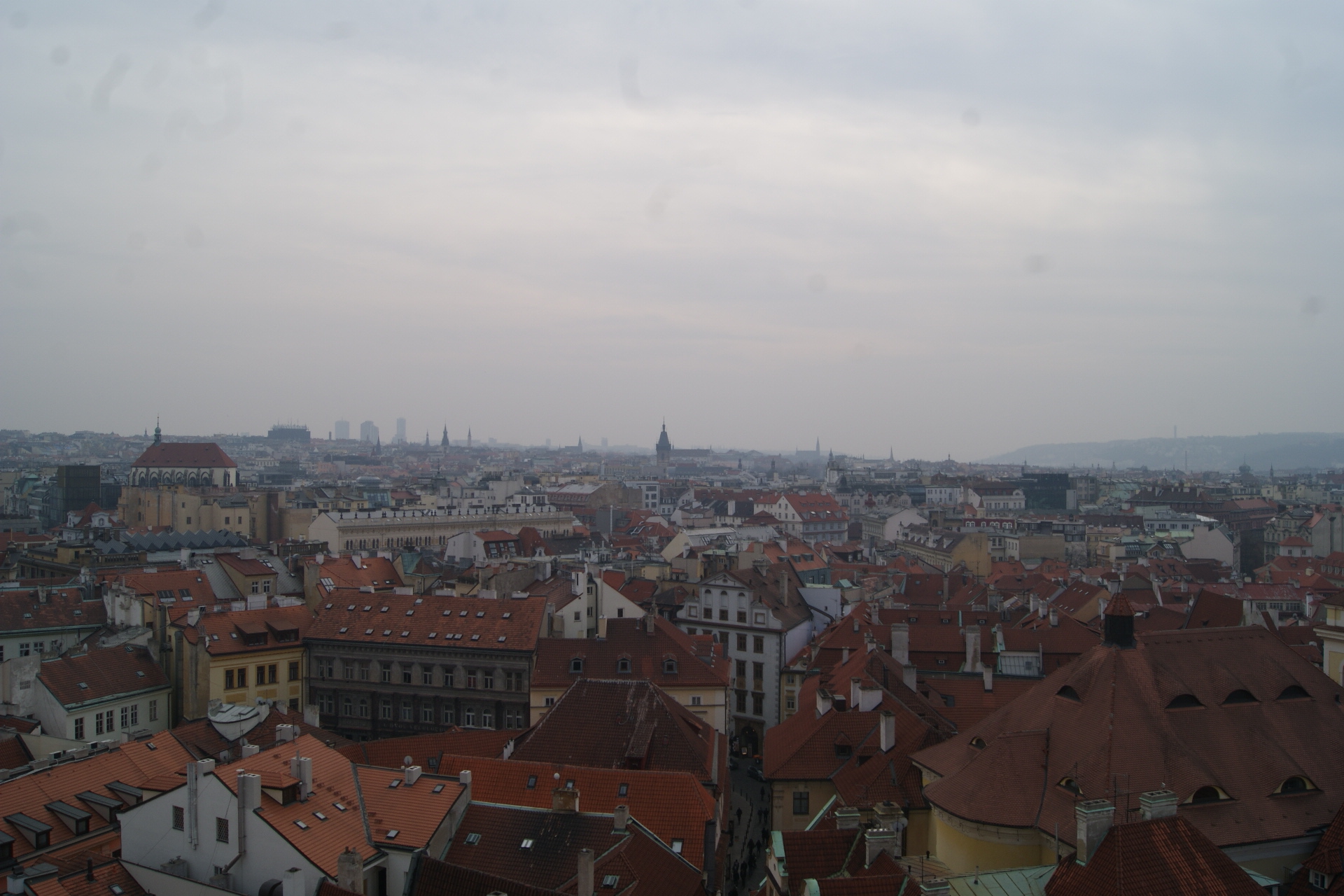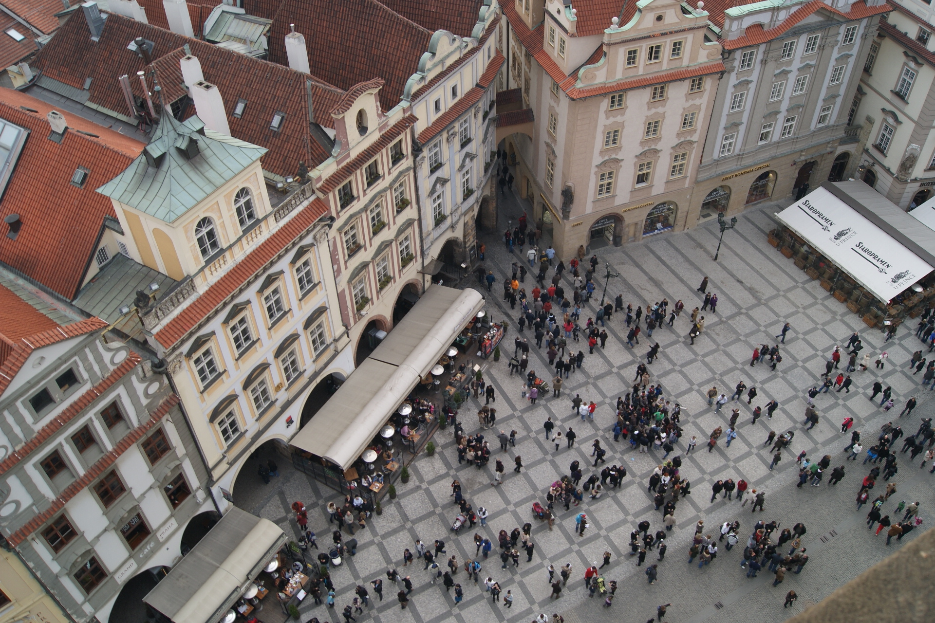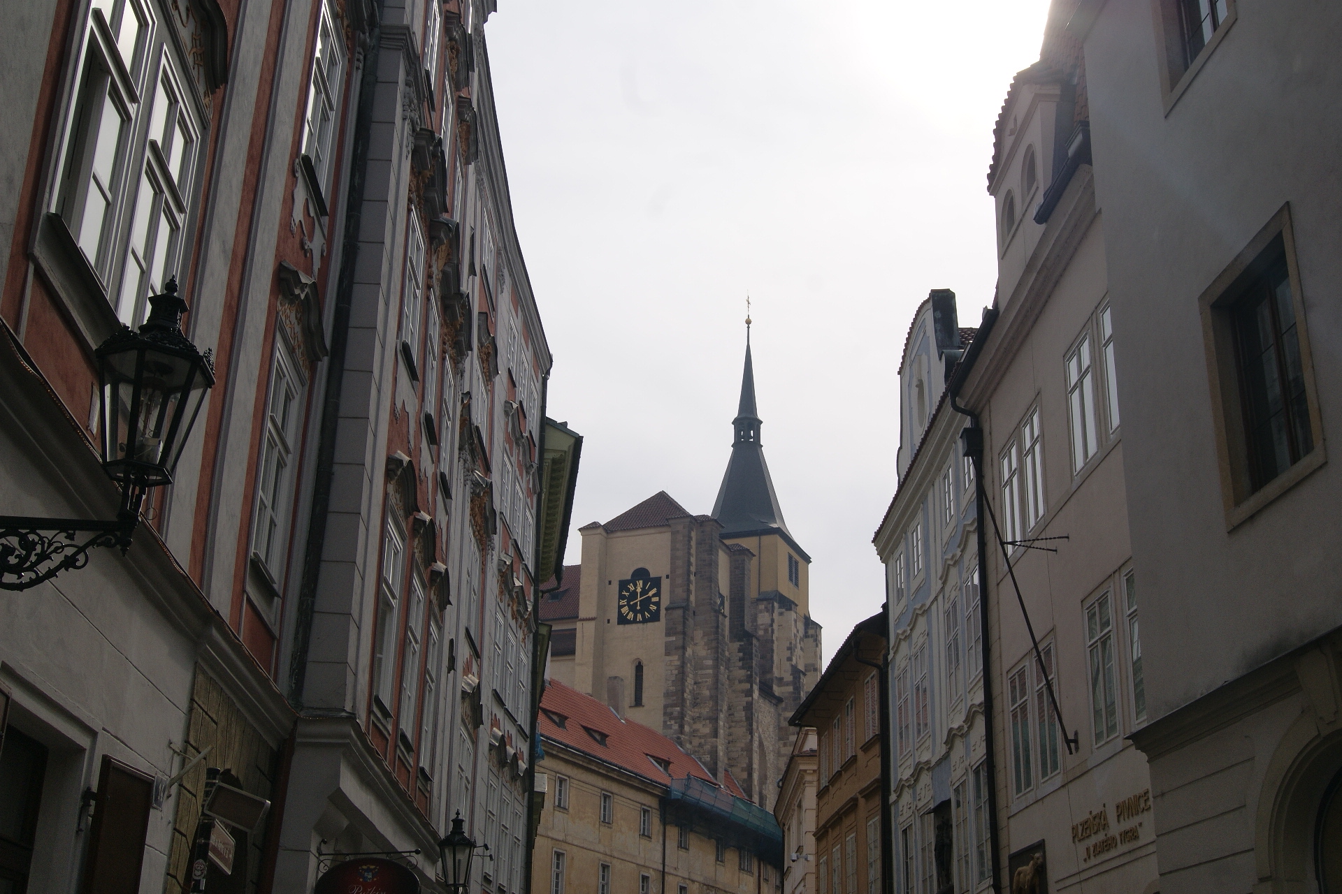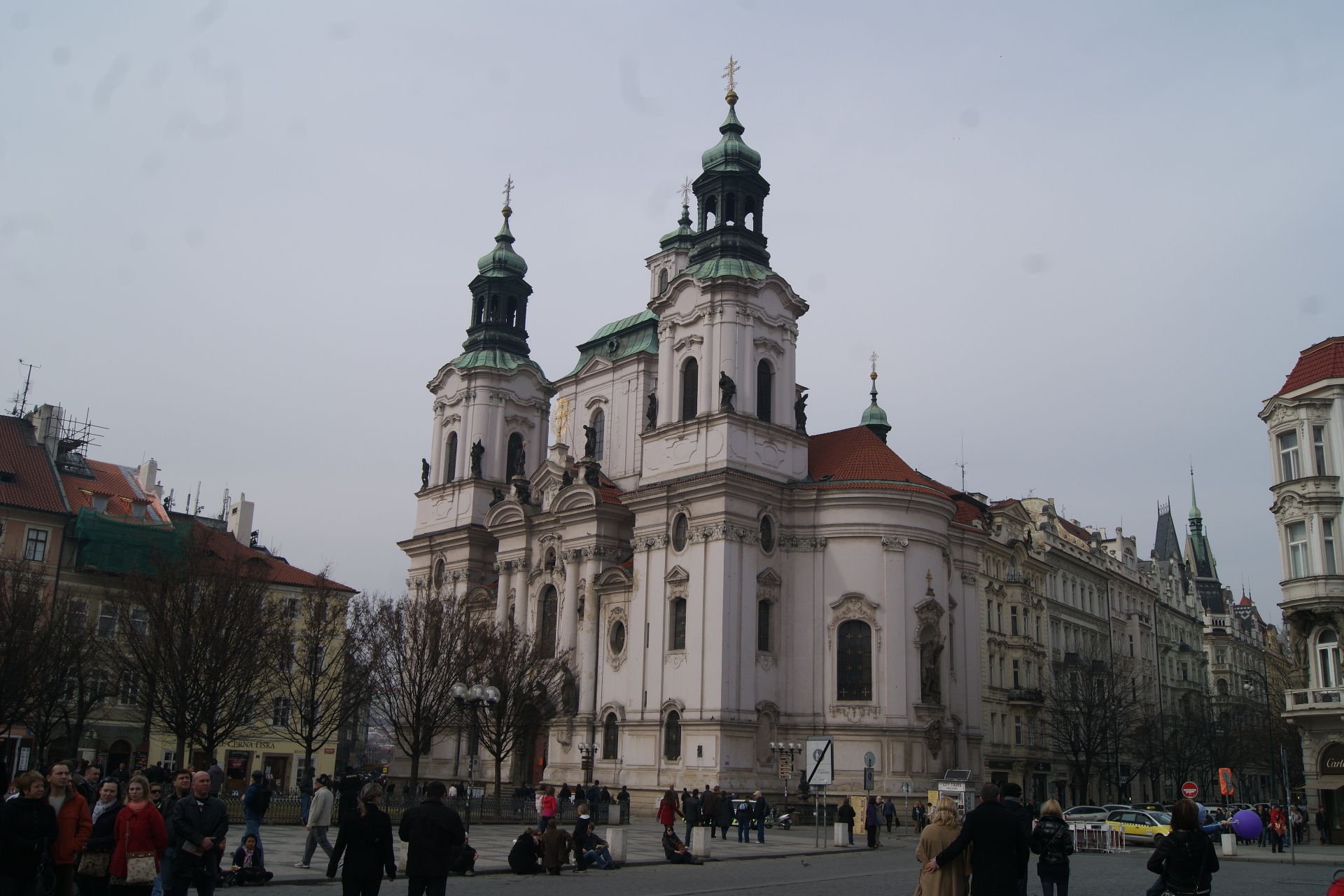 al entrar lo primero que se me vino a la mente fue la imagen de la plaza de Cracovia, amplia, cuadrada, una torre que la domina y una feria artesanal en su centro, rodeada por la iglesia de Tyn, La torre del reloj y la iglesia de San Nicolas