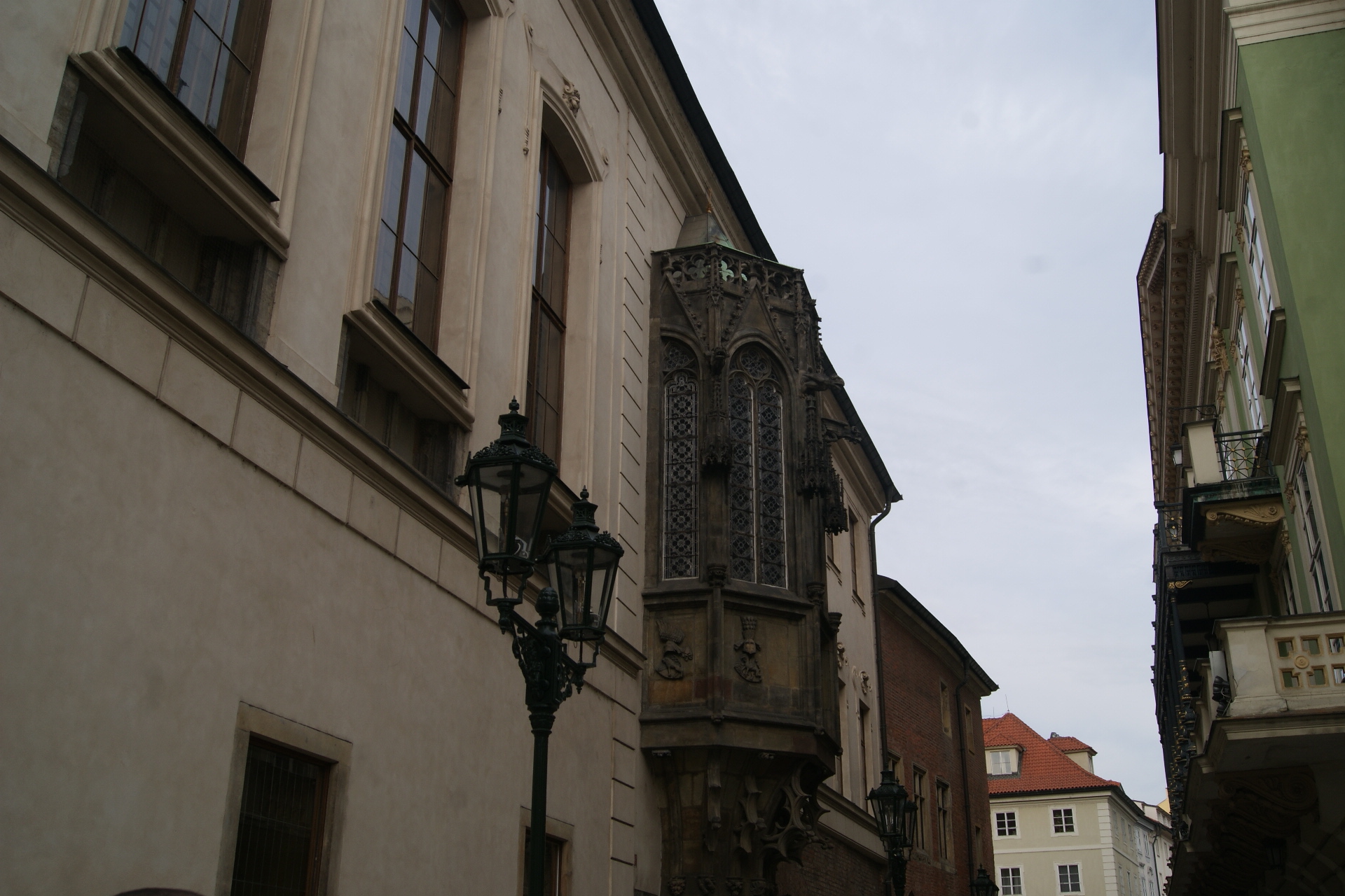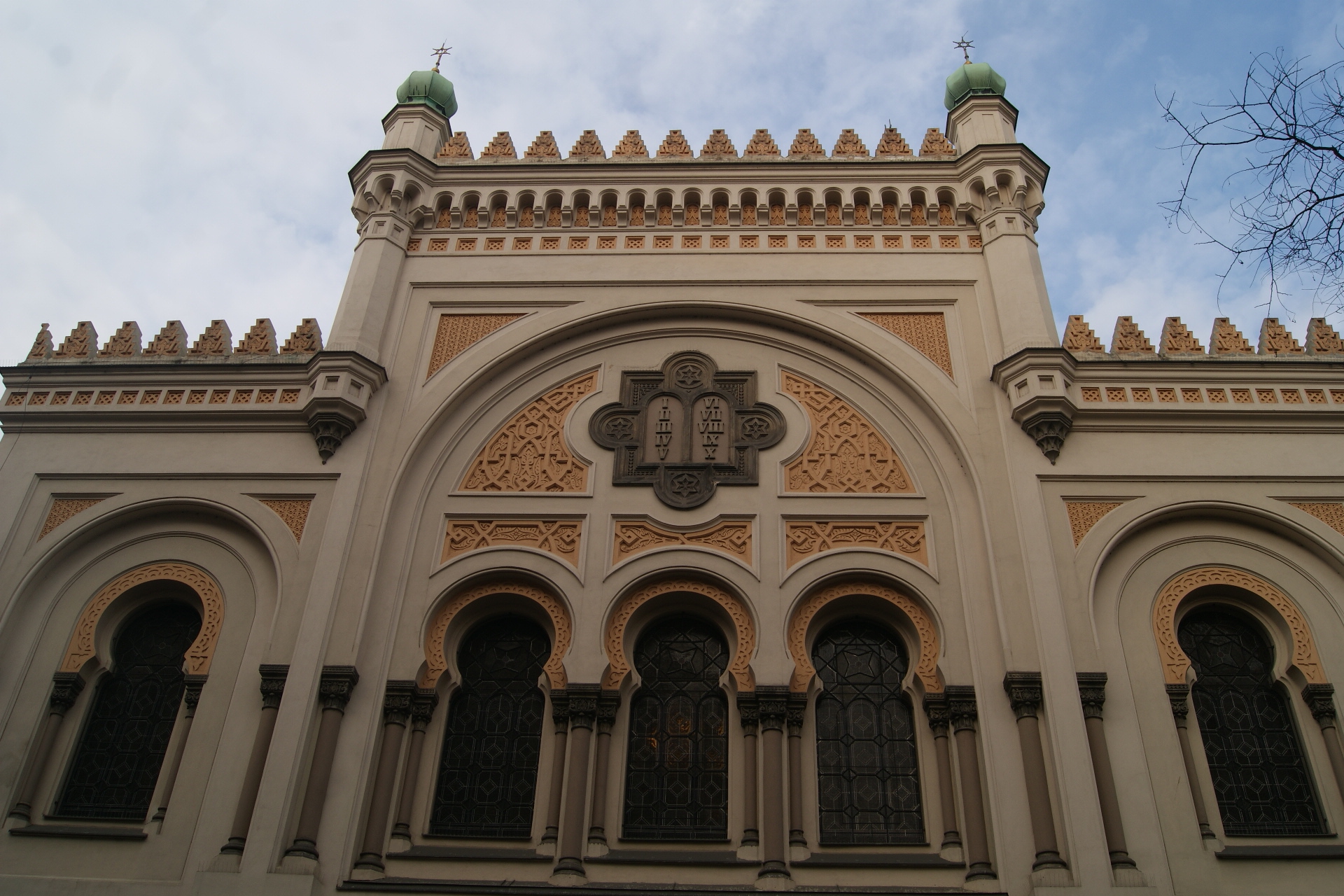 avanzamos hasta meternos en el barrio Judío, el cual esta presidido por la estatua a Kafka, donde se representa uno de sus sueños cotidianos, tras de el, una de las mas bonitas sinagogas, que resistió a pesar delos conflictos bélicos, esta sinagoga es conocida como «la española» ya que su arquitectura recuerda por ejemplo, a la Alhambra.