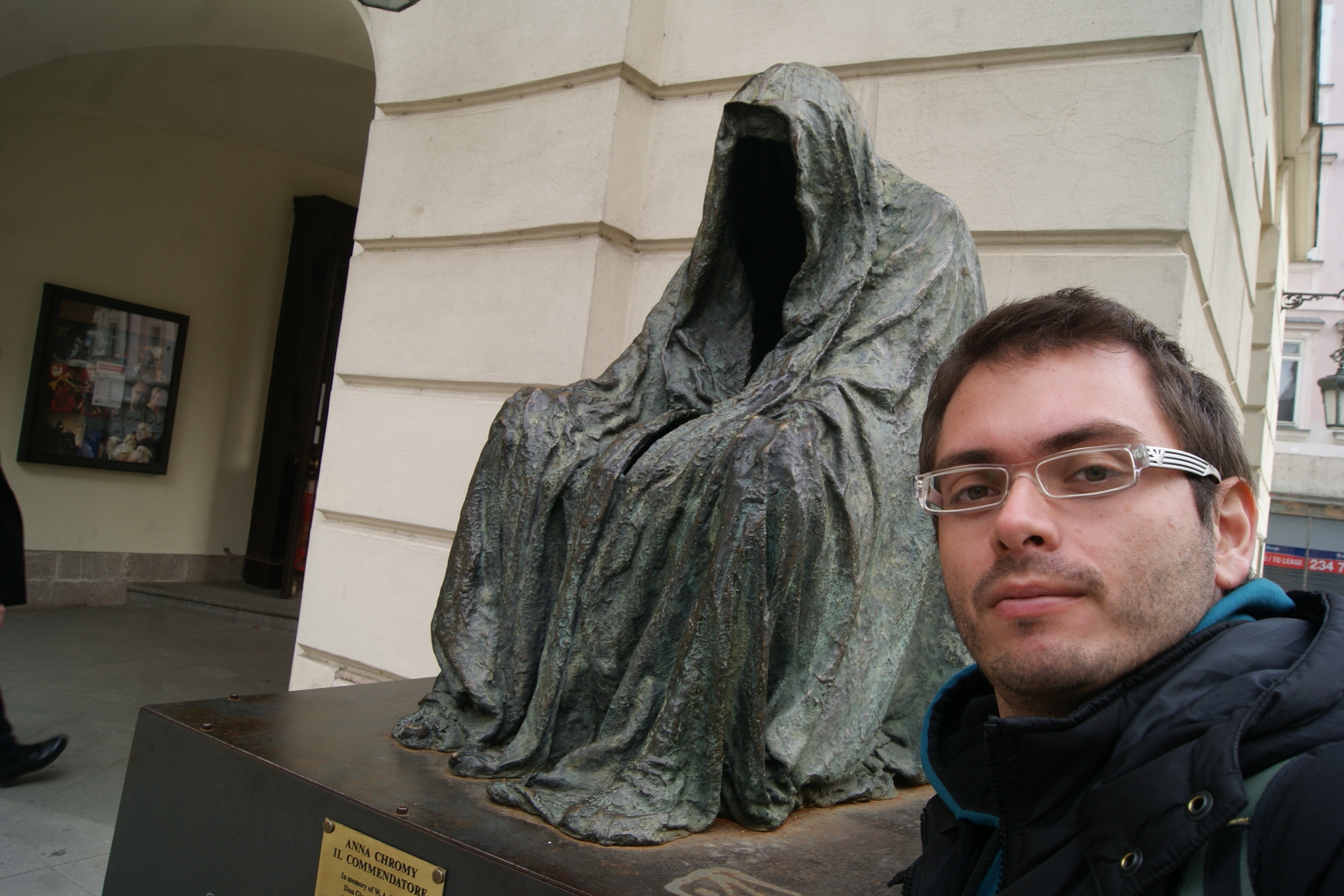 sentados en el Rodolfinum, acabamos la ruta, después de los aplausos y la voluntad típica que suelen pedir en este tipo de tours, yo solo contaba con 5€, así que una vez dispersados llame a David, un chico de Praga, al cual conocía de Internet, y quedamos en conocernos en persona en mi viaje a Praga y enseñarme algo mas de la ciudad