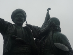 al regreso el clima era mucho mejor, si bien no habia mucho sol, pero la amenaza de lluvia ya no existia, asi que ya bajando del bus comence a hacer el mismo recorrido, pero a pie…avancé hasta la entrada del Kalemegdan, el parque de la ciudad, que alberga su fortaleza, desde la cual se tienen preciosas vistas a Novi Beograd, y al encuentro del Danuvio y el Saba