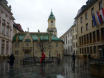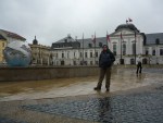 sali de allí por Staromestská y subi para dirigirme hacia el Slavin, zona donde se encuentra el cementerio del ejercito sovietico, en el camino te encuentras con el palacio presidencial, dominado por una gran fuente en forma de globo terraqueo, y detras del palacio, los jardines, zona de esparcimiento y paseo familiar, aparte de ser la zona donde los mandatarios que visitan Bratislava plantan un roble como tradición, y detras de este jardin, la plaza de la libertad, (o gottwaldovo en honor al primer presidente socialista checo) la cual contiene la fuente mas grande de Bratislava y la oficina de correos mas grande del Mundo