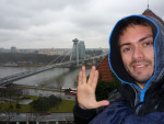 al volver a saber donde estaba, comencé a andar hacia el castillo y el río Danubio, es un paseo de unos 15-20 minutos, con cierta pendiente ya que el castillo domina la ciudad. volvia a llover pero era soportable, asi que dedique un buen tiempo a bordear el castillo y apreciar la ciudad desde lo alto, teniendo por delante el gran Rio, y sobre el New Bridge (Nový Most), el polemico UFO restaurant giratorio que tambien sirve de mirador de la ciudad