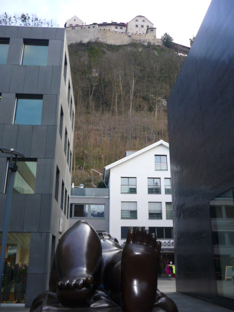 seguí andando pasando por el museo de sellos, y por el museo de arte. llama la atencion una zona que es como un mirador desde donde se puede ver completo el castillo, que está dominada por una escultura de una señora gorda (de la cual no he podido encontrar informacion aun) hasta llegar a la zona comercial, bares, restaurantes y ya salida de la zona centrar del principado