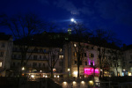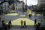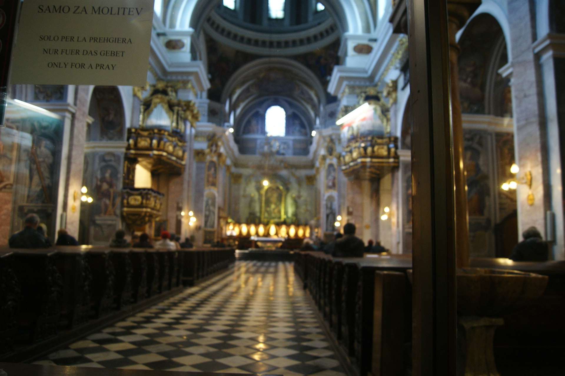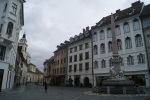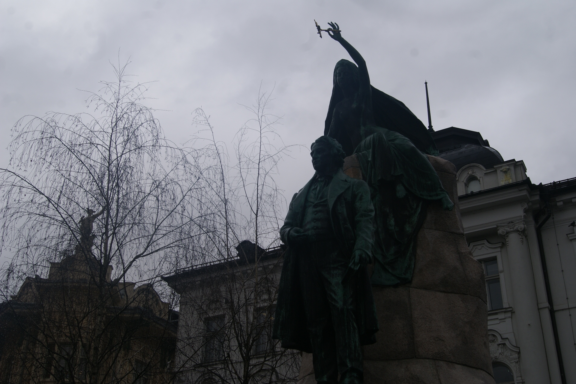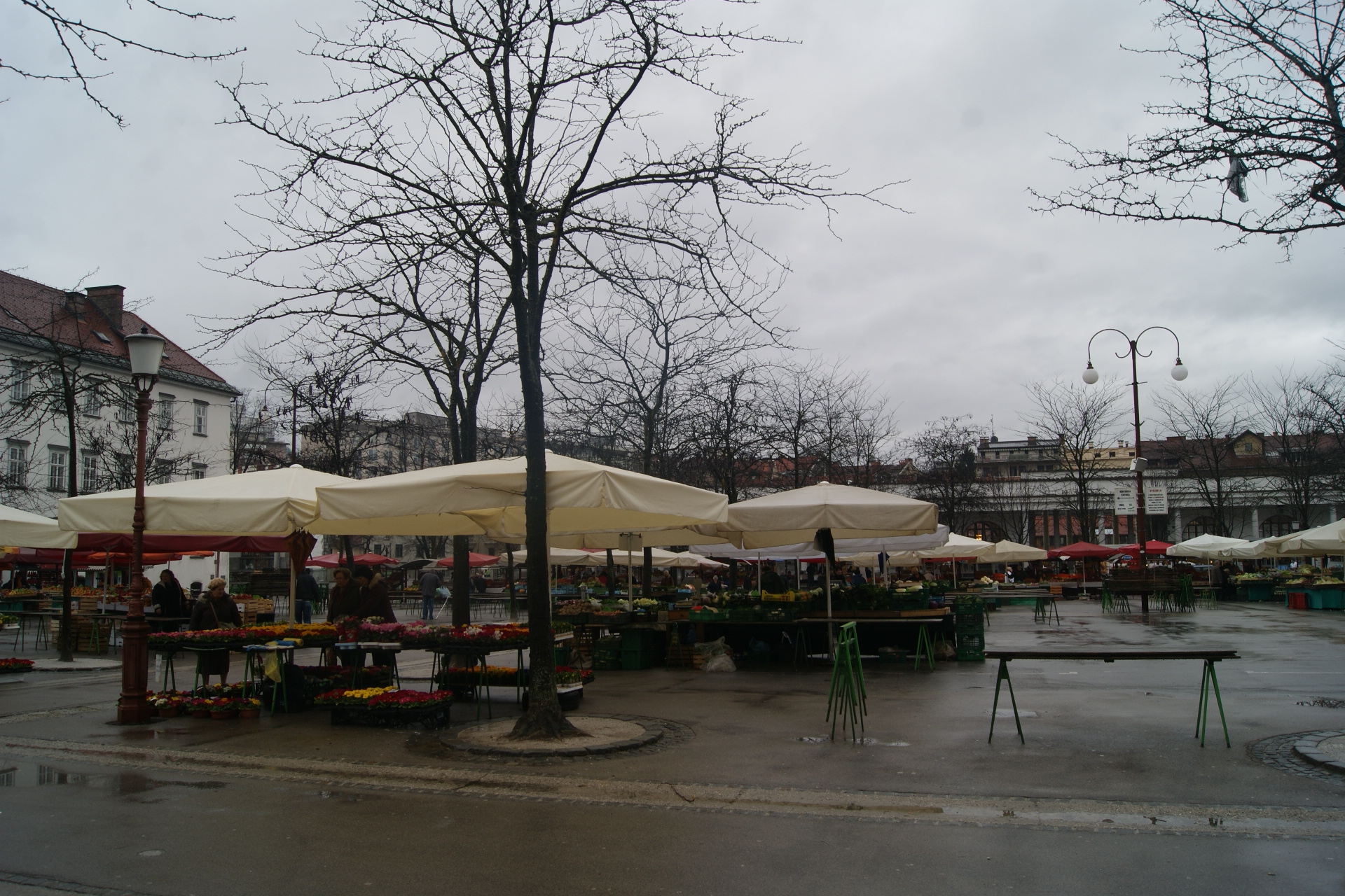 Poco andar se llega a una zona muy comercial, la cual por la hora recien comenzaba a funcionar…de caminar por edificios sin nombre pasas a ver centros comerciales, avenidas y tiendas de ropa, pero tambien se empiezan a dislumbrar torres, iglesias, calles de adoquines… crucé un parque hasta llegar a la avenida principal y de ahi bajar por una paseo peatonal comercial, hasta la plaza central, la Plaza Presernov, lugar dedicado al importante poeta esloveno Frances donde encontré también la Iglesia de la Anunciacion