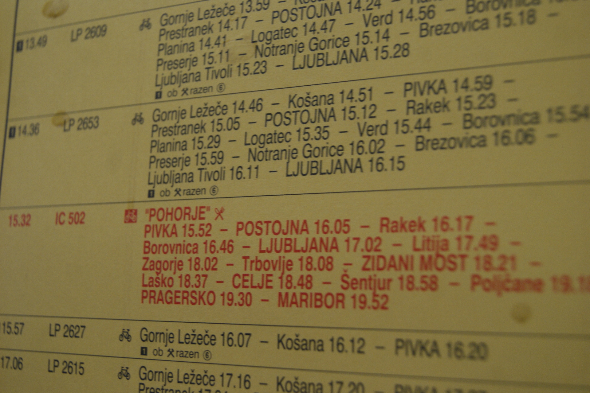 estaba ya en hora, decidí volver sobre mis pasos e irme a la estacion a esperar el tren para Divaca, el cual salío puntual a laS 11:40, el paseo de mas de 1 hora, con mucha curva y mucha pendiente permite observar Ljubljana desde lo alto, para luego adentrarse en zonas mucho menos pobladas