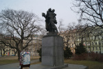 era sabado por la mañana asi que el movimiento no era el de los mayores, asi que liberado del peso, y gracias al mapa que me envió la oficina de turismo de austria, pues pude hacer bastante recorrido por mi cuenta, asi que cogí la calle paralela a la estacion, bordee el parque de la estacion, el cual no tiene nada excepto una estatua de la cual no he encontrado mucha informacion, es de 2 soldados en actitud cariñosa, aparentemenete sovieticos, seguí por washingtonova, sin antes pararme frente a la opera y al museo nacional, 2 grandes edificios muy cercanos, ni a 5 minutos de la estacion de tren.