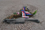 luego nos fuimos al sitio donde yo me comí mi atun, y nos explico lo que sucedio alli, las defenestraciones de la epoca, y las guerras que sufrió Praga alli por el 1400 y en 1600, donde fue la mas importante de ellas, en frente, 27 cruces blancas pintadas en el suelo reflejan a los muertos en esos sucesos
