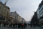 cruzamos en frente del hotel Intercontinental, famosos por algunas de las celebridades o politicos que se han alojado alli, al fondo, sobre la colina, el metronomo, actual simbolo de la ciudad….quizas por las palabras de Mozart, o quizas por que ahora indica que el pulso de la ciudad es de los ciudadanos de Praga…ahi antes estaba una gran estatua de Stalin.