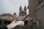 bajé en ascensor, y me dirigí hacia el punto de encuentro, el starbucks que hay frente al reloj, ahi nos esperaba un chico con un paraguas rojo, identificacion del tour, donde esperamos un poco, unos 15 minutos para irnos hasta la otra esquina, justo en frente de la iglesia de san nicolas, donde se haria la separacion de tour gratis, a kutna hora, en inglés, español, etc etc
