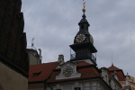 luego del estomago “lleno”, me fui al reloj y a subir a la torre (100CKZ = 4€), pagas en un lado, pero la entrada es saliendo a la derecha, pasas por una zona de turismo, y subes, o caminando, o por ascensor; era sin peldaños, solo que en caracol, asi que decidí subir, es estrecha pero caben 2 personas si te topas con una que baje… aunque normalmente bajan en el ascendor. No recuerdo cuantas vueltas dí, pero fueron mas de 10, casi al final llegas a una escalera muy estrecha tambien en caracol, hasta que llegas a la cumbre, una habitacion cerrada con 4 puertas, cada una dando a una zona de la ciudad…llamemosle balcones