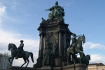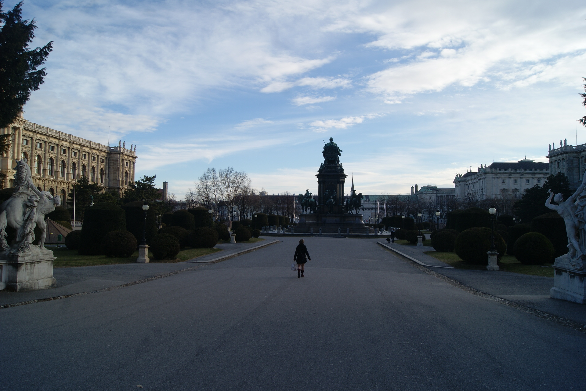 avance, bastante, hasta que comence a divisar los techos de edificios antiguos, duomos, catedrales y demas, por tanto guardé el mapa y comence a moverme por la intuicion, asi acabe cruzando la zona de museos (MuzeumQuartier) para dirigirme hacia la plaza de Maria-Theresien, La plaza se encuentra enmarcada por dos enormes edificios gemelos en cuyo interior se encuentran el Kunsthistorisches Museum (Museo Nacional de Historia del Arte) y el Naturhistoisches Museum (Museo Nacional de Historia Natural), construidos entre los años 1872 y 1891.