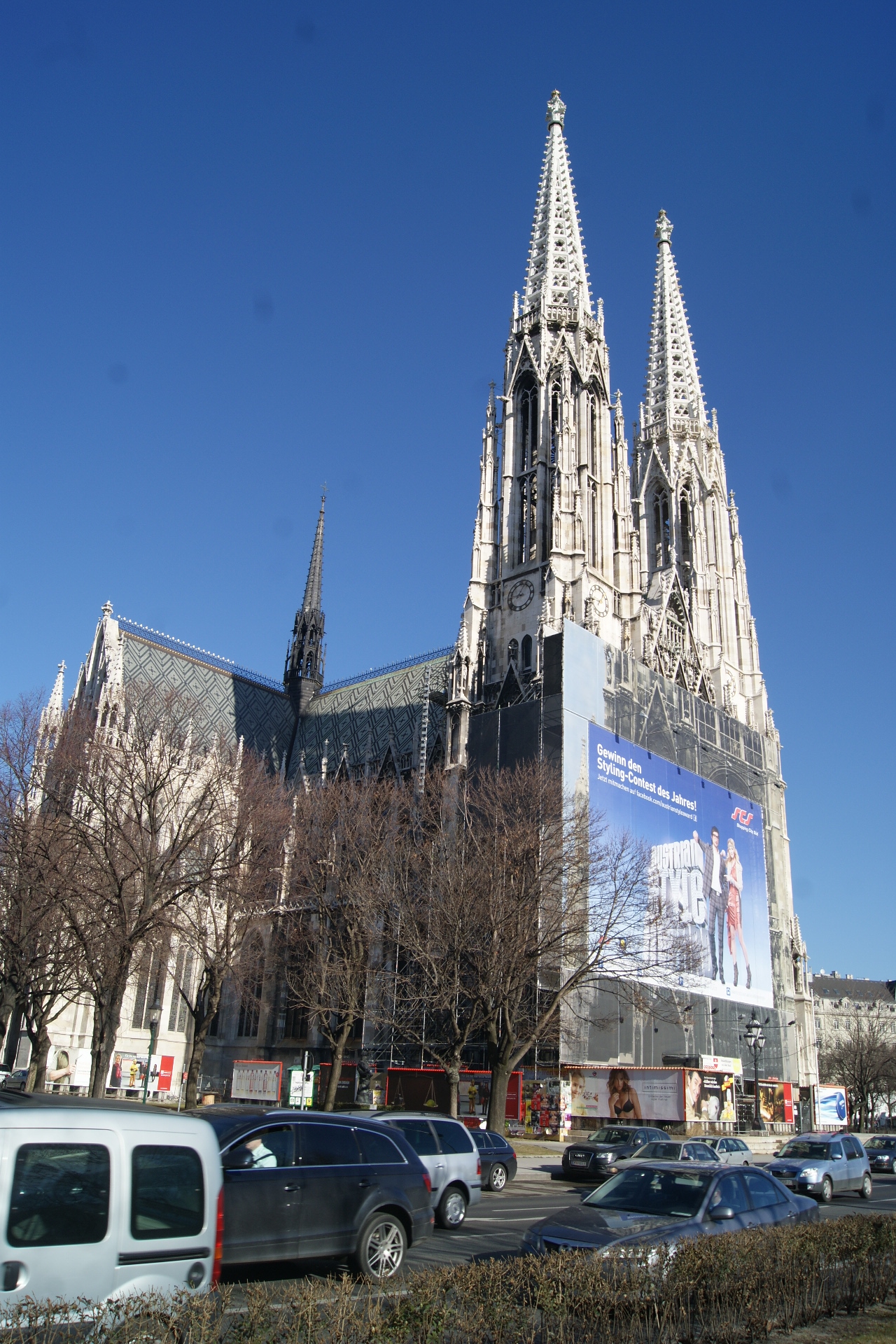 seguimos y llegamos a la universidad de Viena, y si, era domingo pero se veía gente entrando y saliendo, asi que al parecer, Marzo y Domingo, no son excusas pa ir a estudiar, al menos en Austria,n y a su lado, detras del Parque a Sigmund Freud, encontramos la Iglesia Votiva (Votivkirche), la cual es una de las referentes del estilo NeoGotico mas importantes a nivel mundial