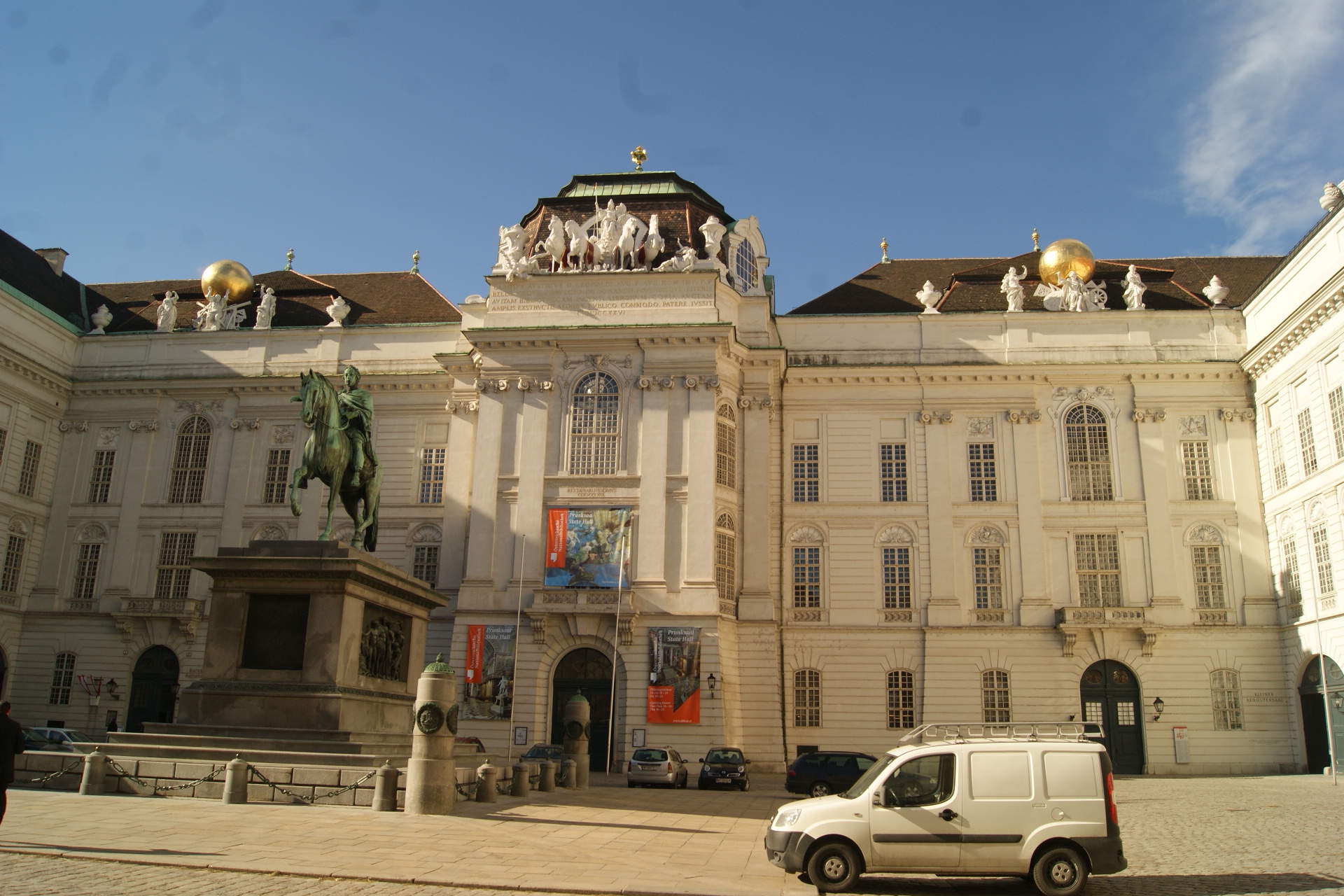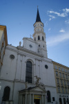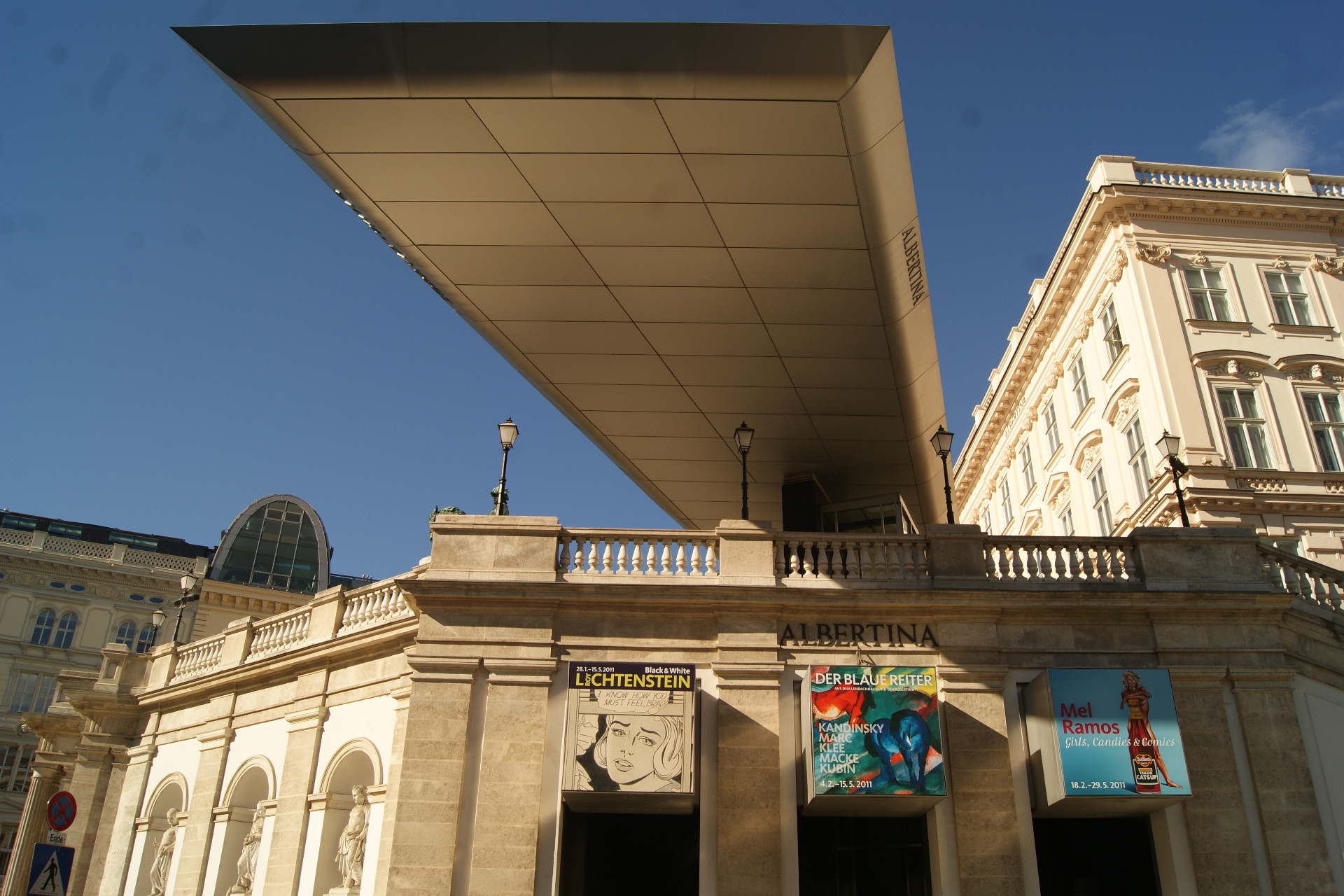 subí por Schottenring y bajé por Herrengasse, mas que nada para llegar hasta un punto de información turistica, a ver si me daban un mapa mas comodo que ese. asi que llegué hasta Michaelerplatz donde está la iglesia de San Miguel, y en frente la escuela española de equitación y otra dependencia de la universidad, al seguir bajando llegar a la Biblioteca Nacional, y en el final de la calle, la ALBERTINA, una de las galerias de arte mas importantes del mundo