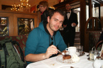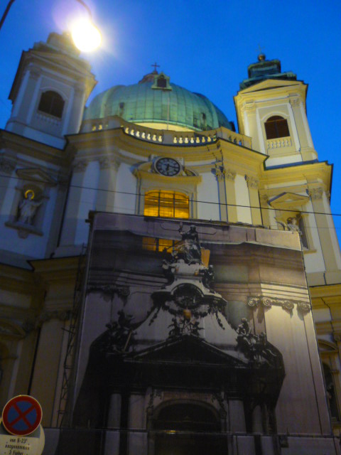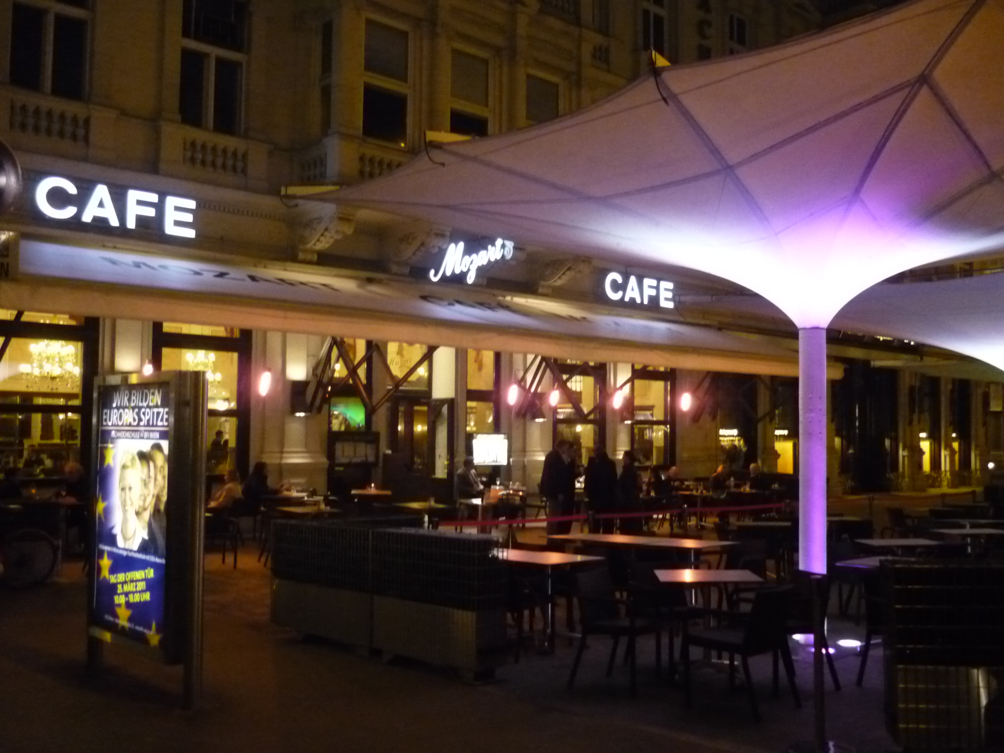 sin darnos cuenta, llegamos a la ALBERTINA nuevamente, y salió la idea de algo típico Vienés, ya que la comida fue bastante estandar, asi que paramos en el cafe Mozart (ja - ja) a un café con una tarta Sacher :) nos sentimos bastante raros ahi ya que es un sitio de camareros de smoking, lamparas de lagrimas, y señoras ultra-lacadas, y jovenzuelos pijos al maximo con camisas de rayas y pantalones tipo Lacoste, nosotros, de camiseta y jeans, zapatillas y mochilas al hombro… seguramente eramos parte de la atraccion; ahora muy pijo el lugar pero para ir al baño tenias que pagar!!! la voluntad, pero pagar….