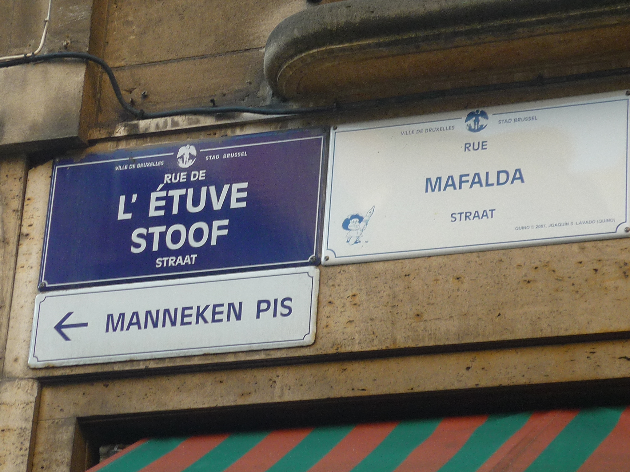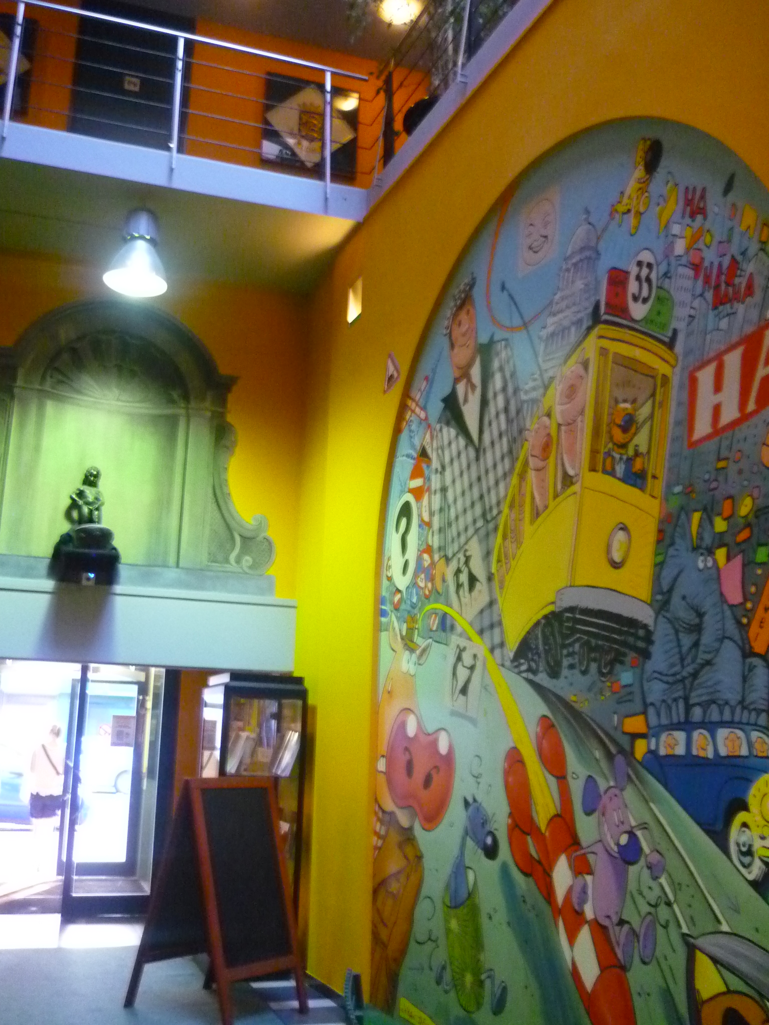 La plaza es enorme y es preciosa, mucha gente y mucha vida, al lado casi unas pinturas de Tin-tín, y el niño meón que es un poco desilusionante porque es un mini niño… pensaba que sería más grande, pero quizás un niño más grande meando seria ofensivo jajaja