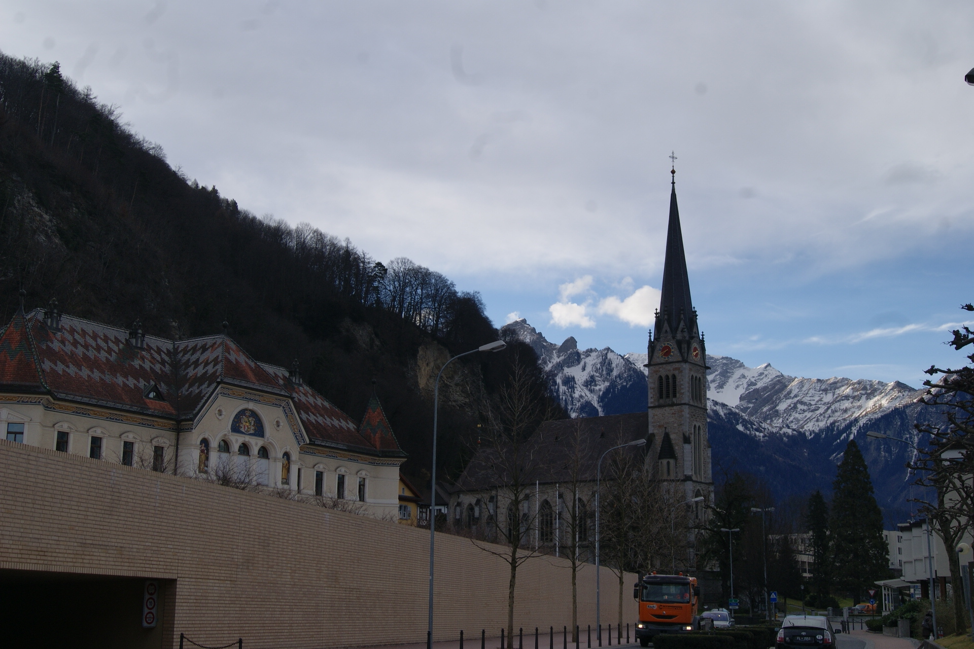 como la oficina de turismo está casi al final de la zona de interés turístico, pues comencé desde el final, desde la iglesia de Vaduz, a su lado, la casa de la música, y siguiendo por la calle principal, el edificio del parlamento y el edificio de gobierno, hasta llegar nuevamente a la oficina de turismo